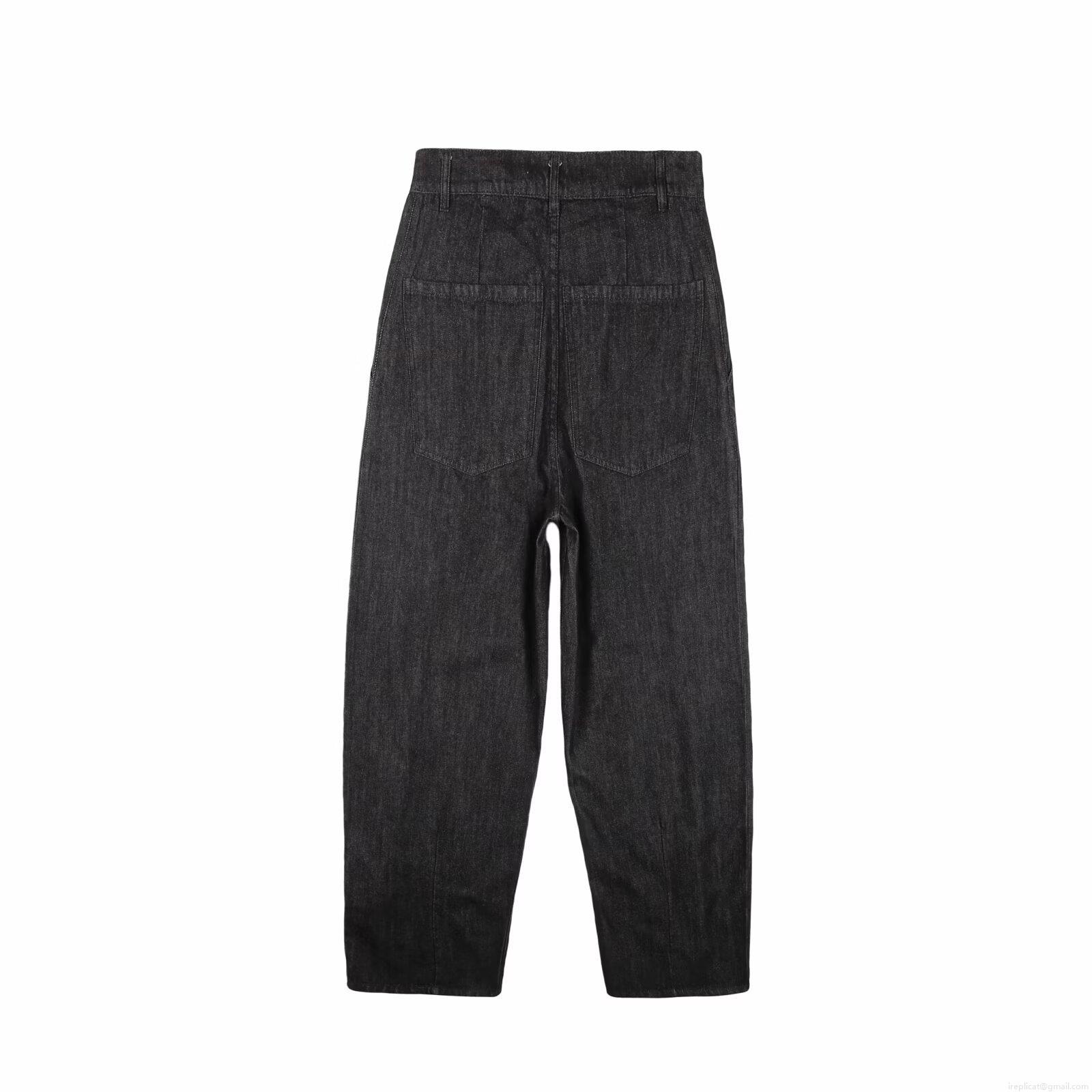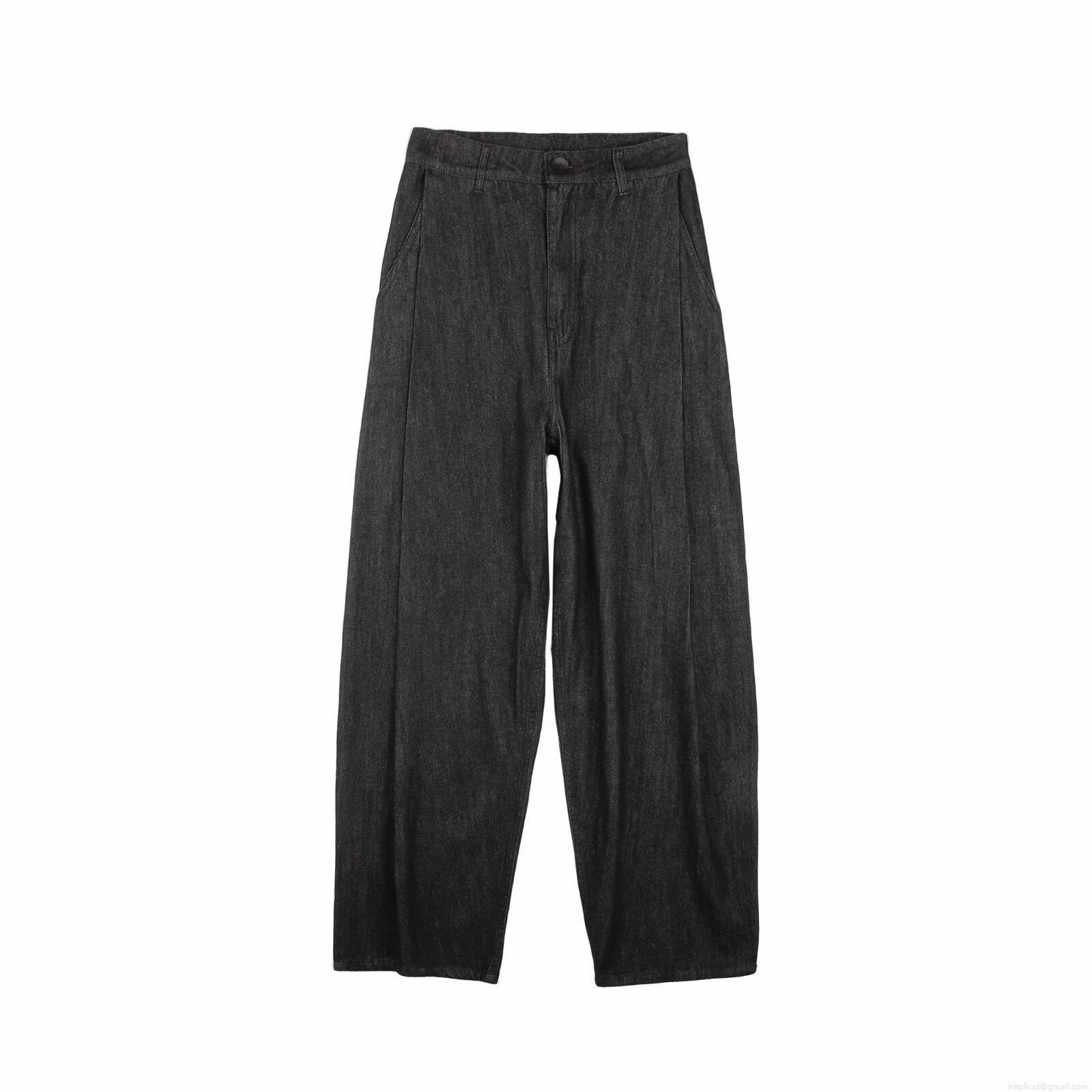 • Women's Casual 100% Cotton Denim Curved Leg Jeans Loose Fit Pleated Mid Waist Streetwear Solid Color Barrel Pants With Pockets