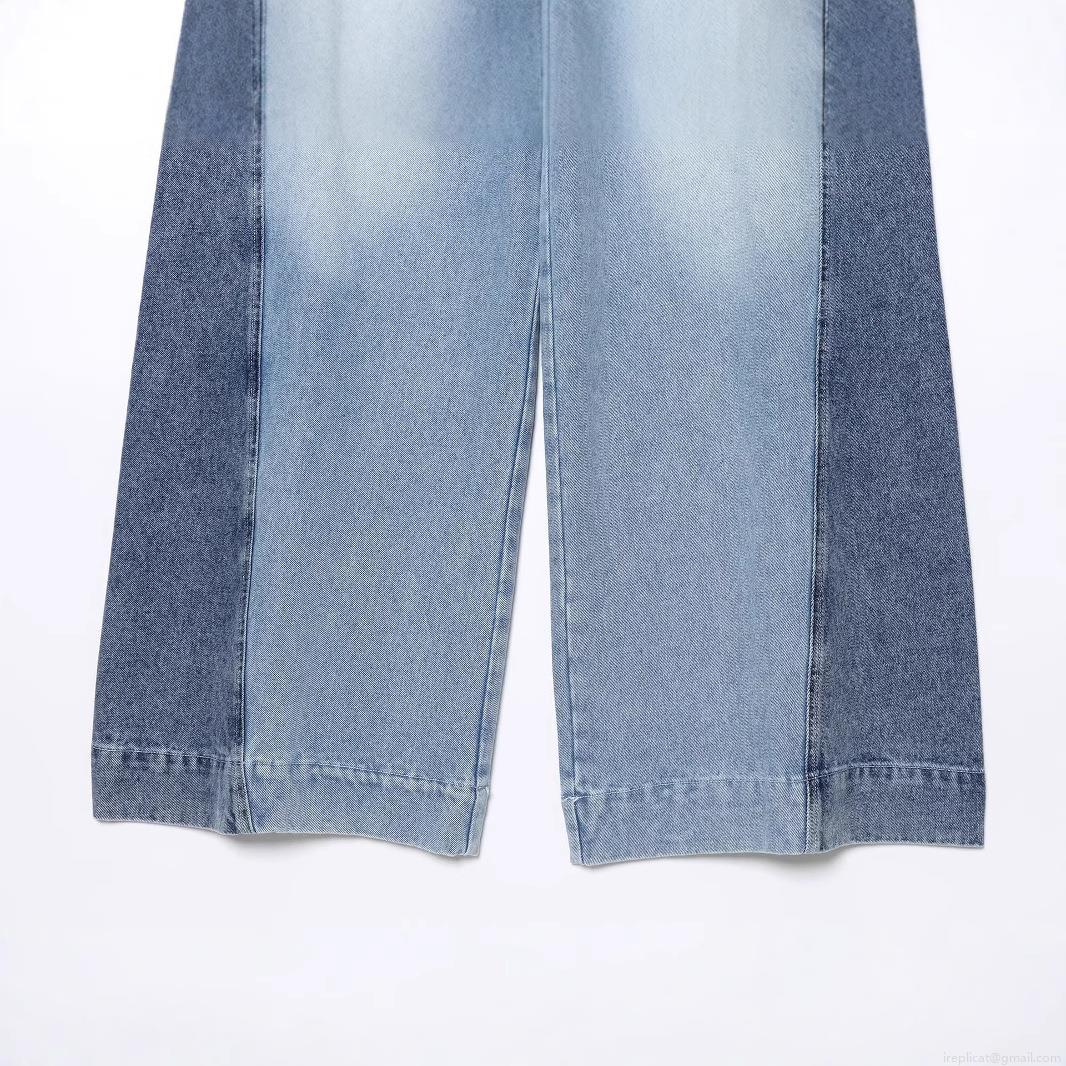 • Women's Color Block Wide Leg Jeans Polyester Denim Patchwork High Waisted Casual Streetwear Straight Pants Trousers For Women