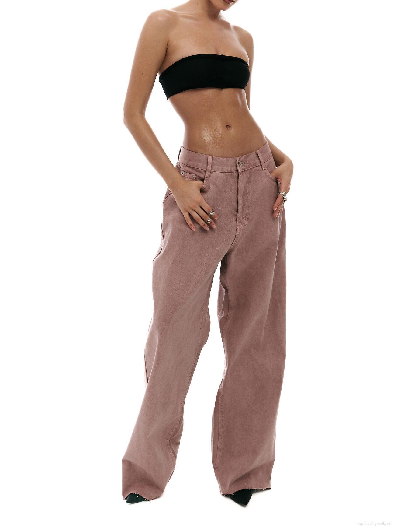 Women's Dirty Pink Wide Leg Jeans Cotton Blend Low Waist Loose Straight Denim Pants Y2K Streetwear Chic Trousers For Women