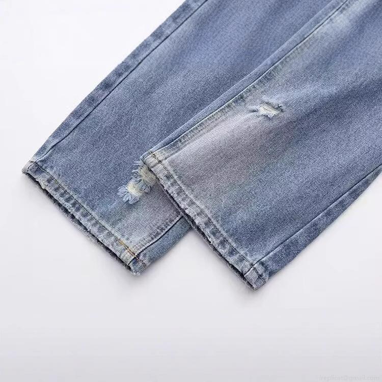 Women's Distressed Straight Leg Jeans High Waist Washed Blue Ripped Cotton Denim Pants Casual Streetwear Fashion Jeans Retro Style