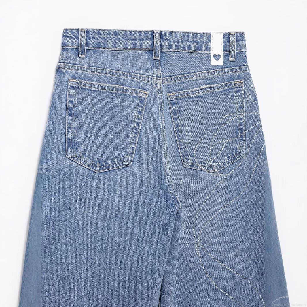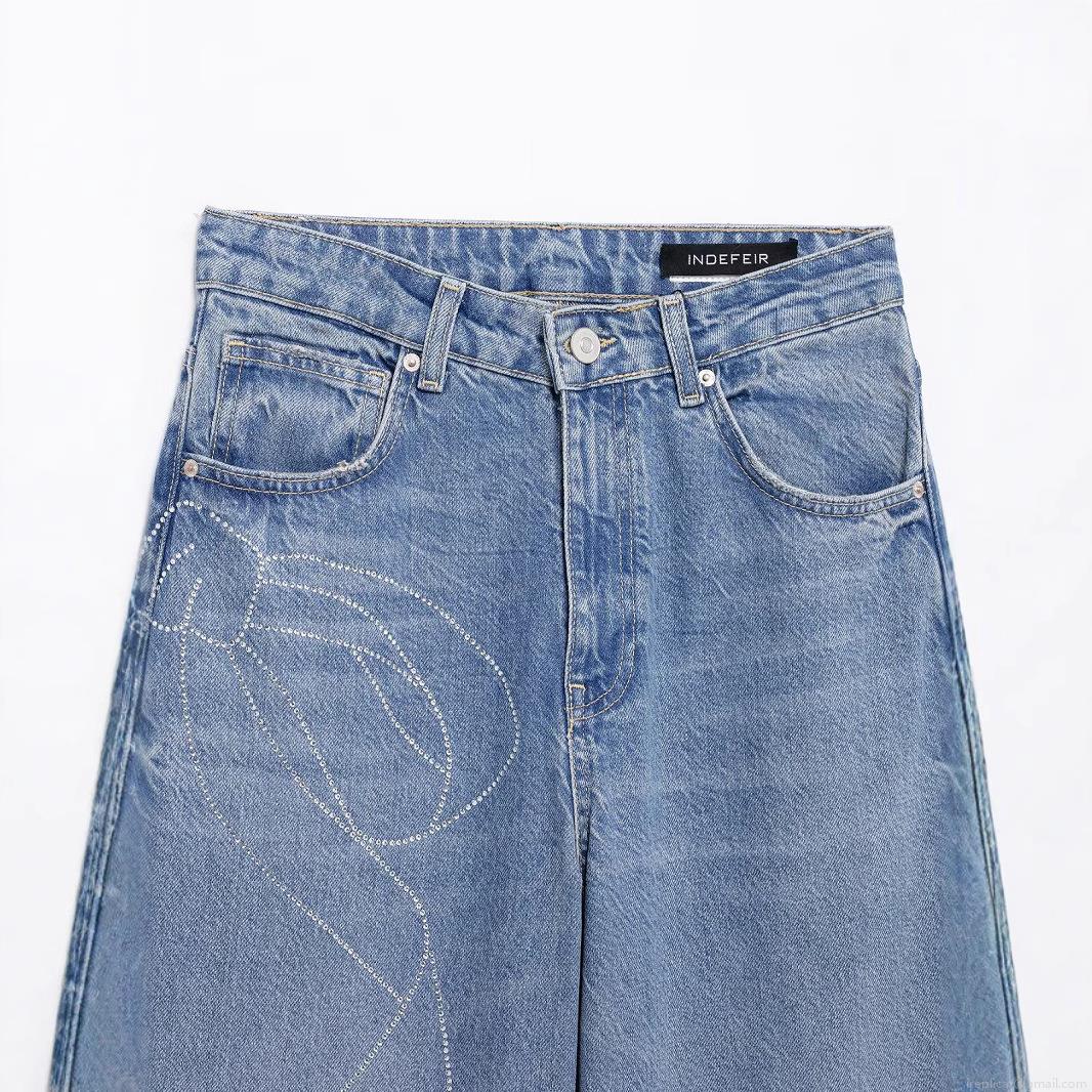 • Women's Fashion Casual Rhinestone Bow High Waist Wide Leg Jeans Loose Fit Denim Pants Streetwear Cotton Blend Long Trousers