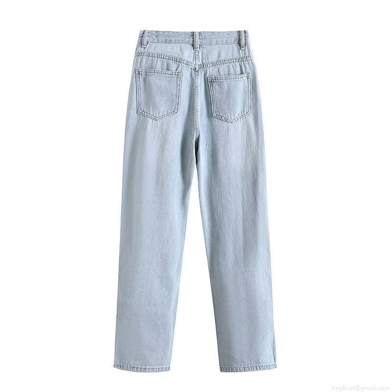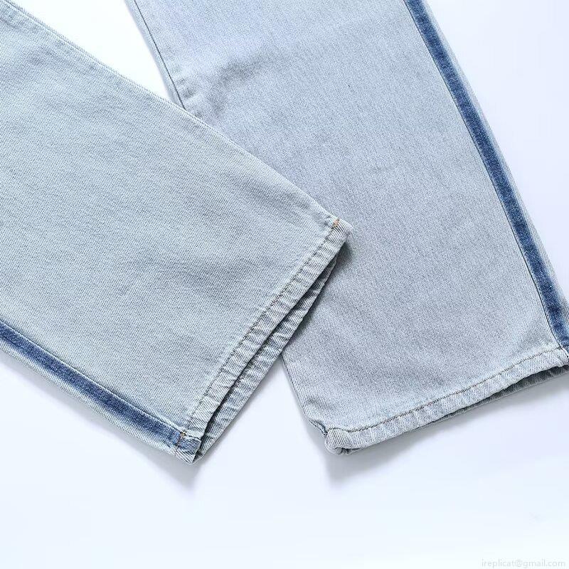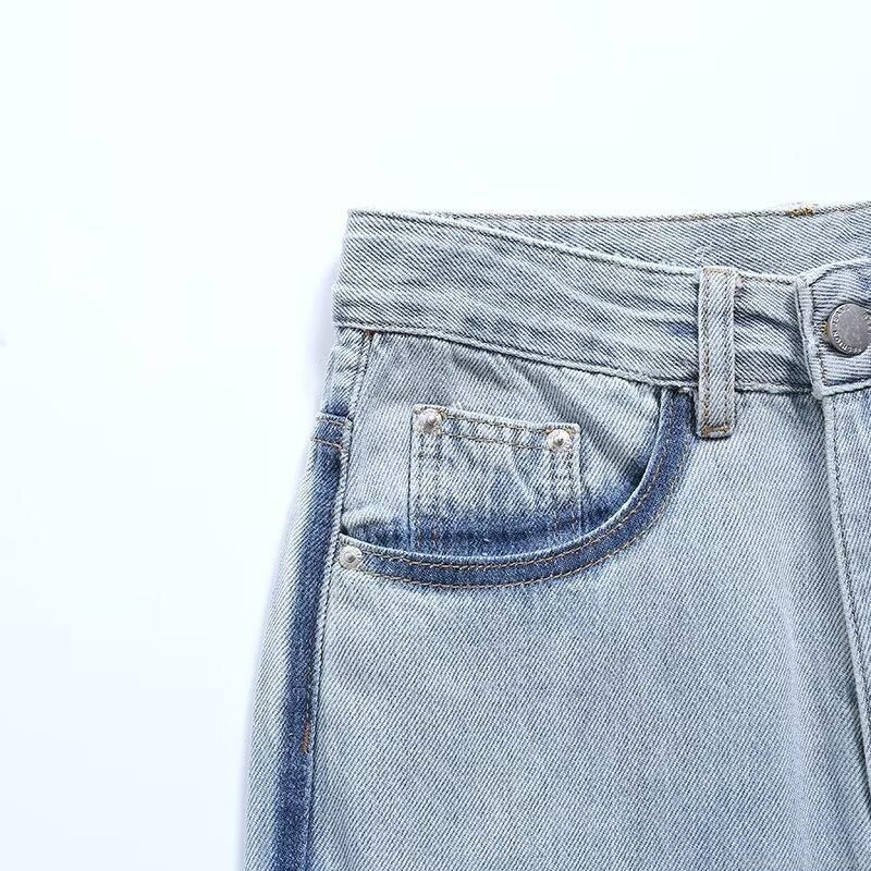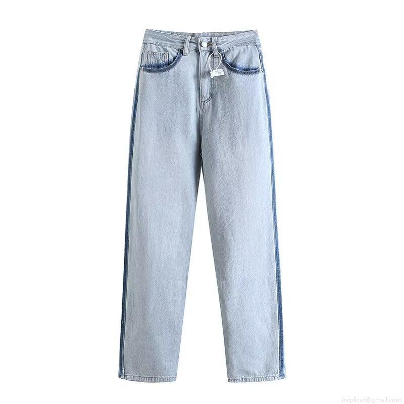 Women's Fashion Washed Denim Straight Leg Jeans With Contrast Side Stripes Street Style High Waist Long Denim Pants For Ladies