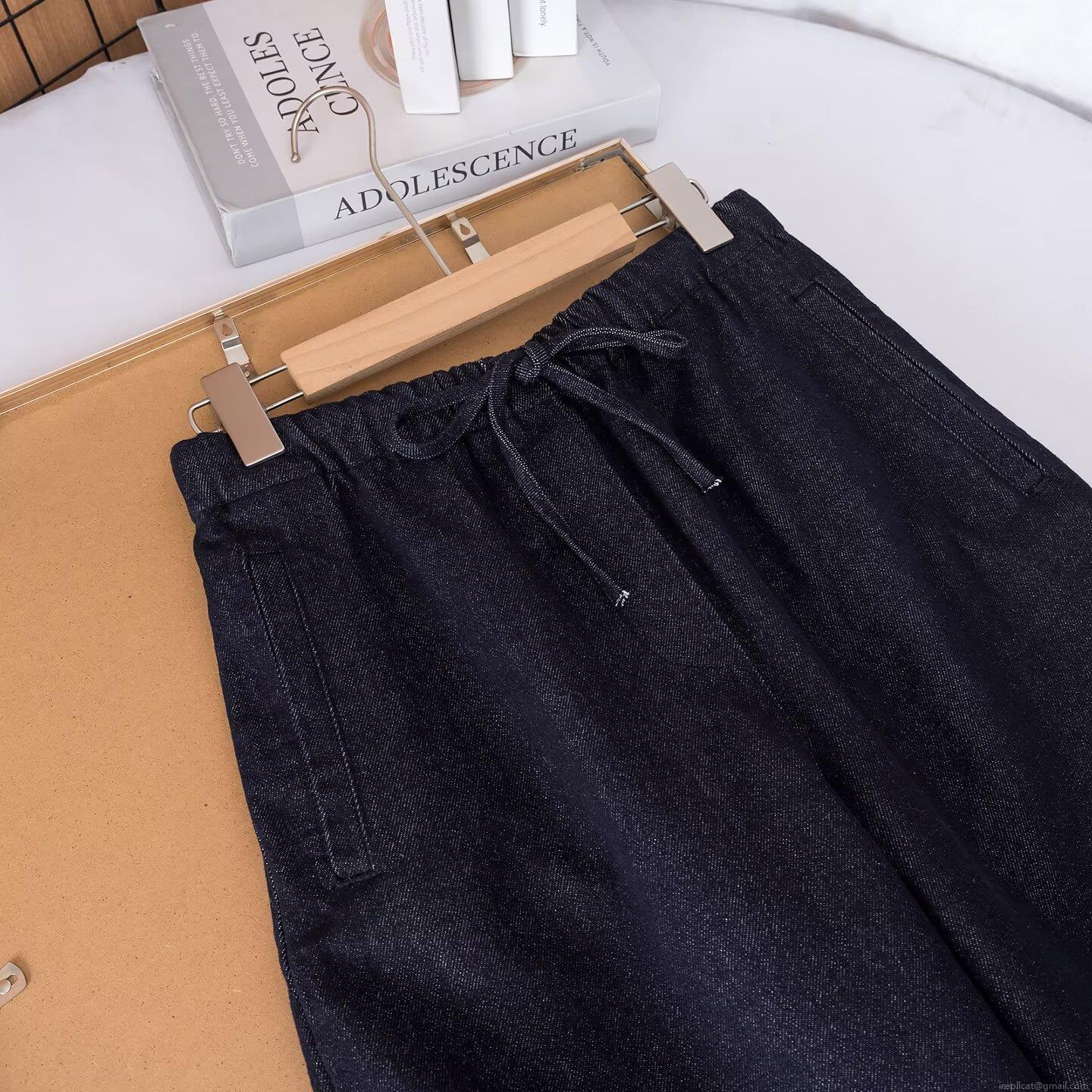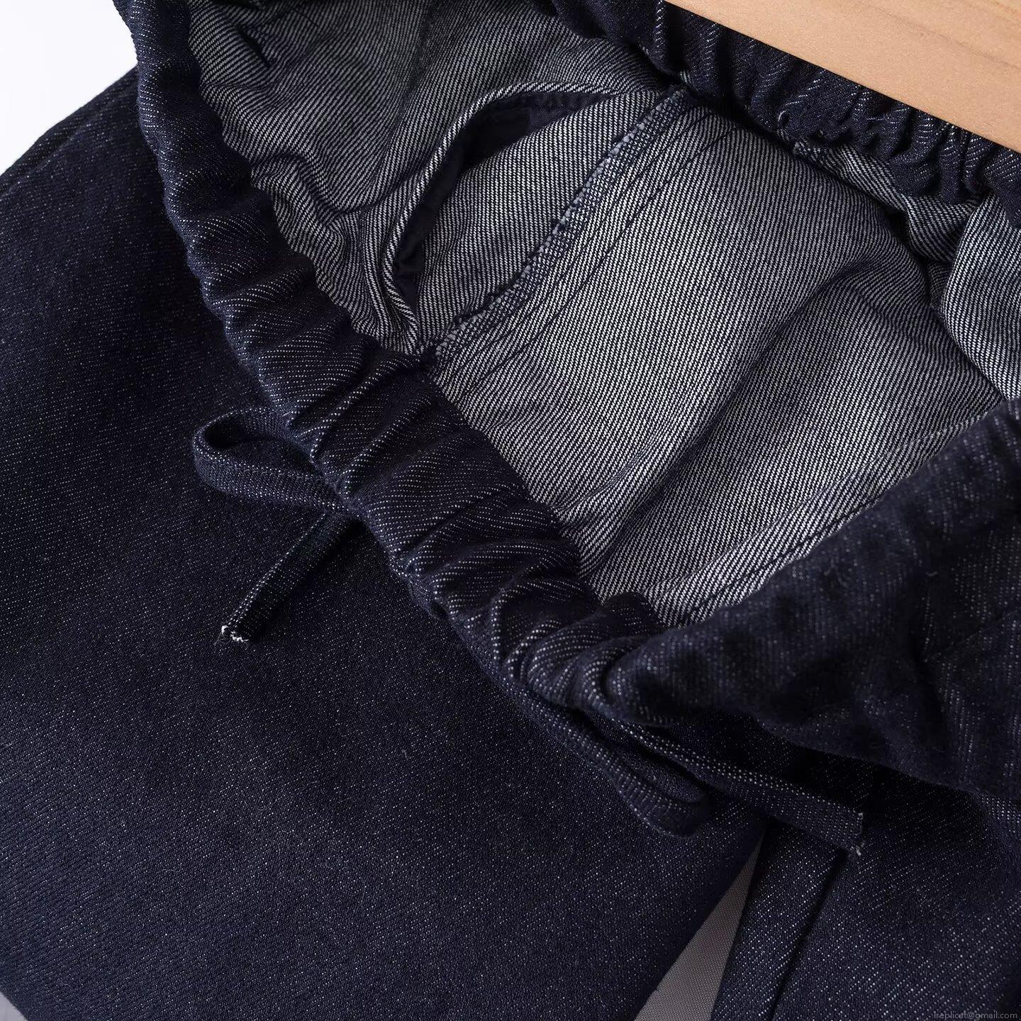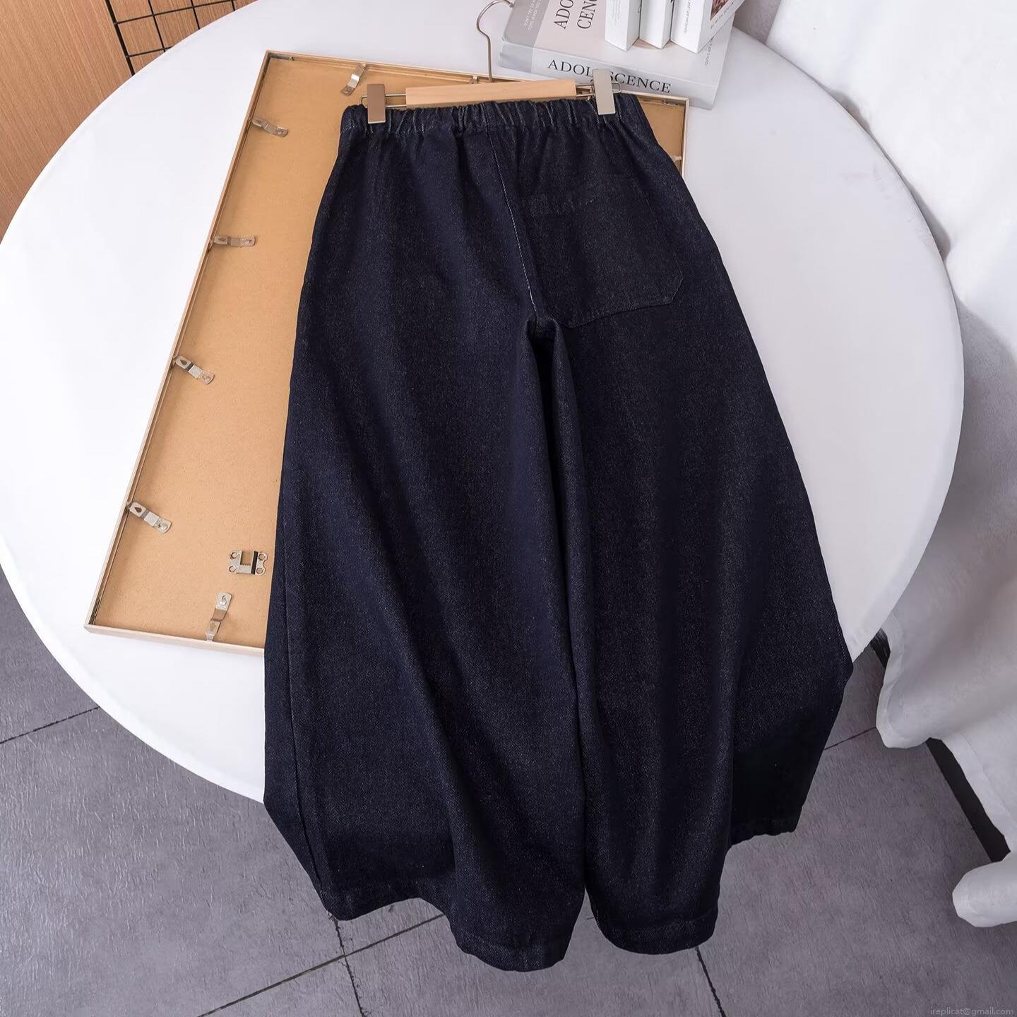 • Women's Fashion Wide Leg Denim Jeans High Waist Elastic Drawstring Loose Casual Straight Trousers Dark Blue Washed Denim Pants For Ladies Daily Wear