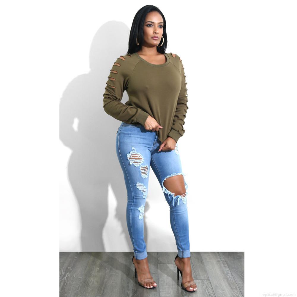 • Women's High Stretch Ripped Skinny Jeans Distressed Washed Denim Pencil Pants Fashion Streetwear Slim Fit Light Blue Denim Trousers For Ladies