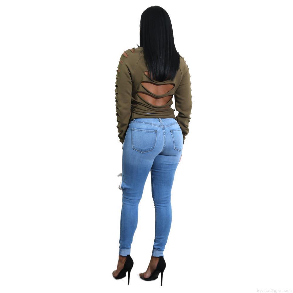 Women's High Stretch Ripped Skinny Jeans Distressed Washed Denim Pencil Pants Fashion Streetwear Slim Fit Light Blue Denim Trousers For Ladies