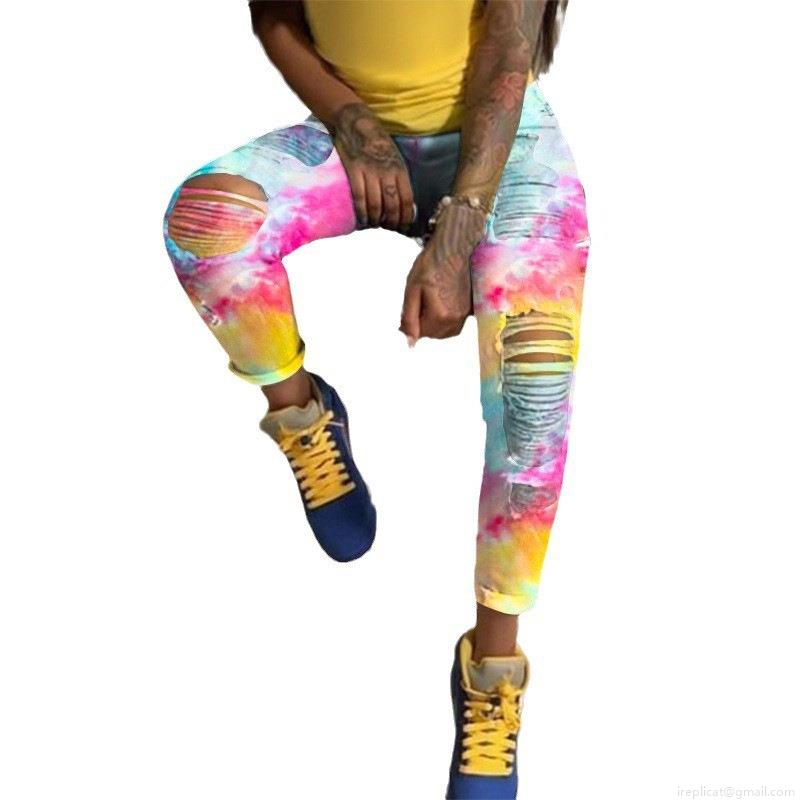 • Women's High Stretch Tie-Dye Ripped Skinny Jeans Cotton Blend Denim Distressed Slim Fit High Waisted Long Pants For Streetwear Party Casual Aesthetic