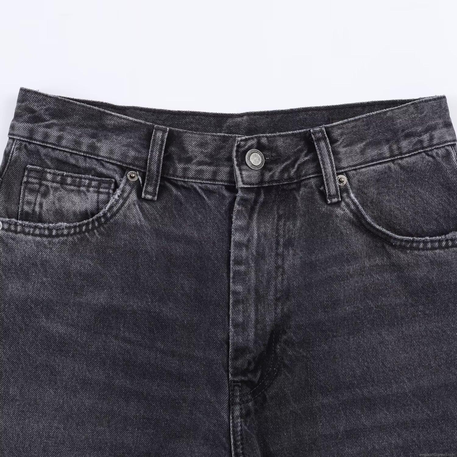 Solid Color, Barrel-shaped, Cone, Retro, High-waisted, Washed Texture