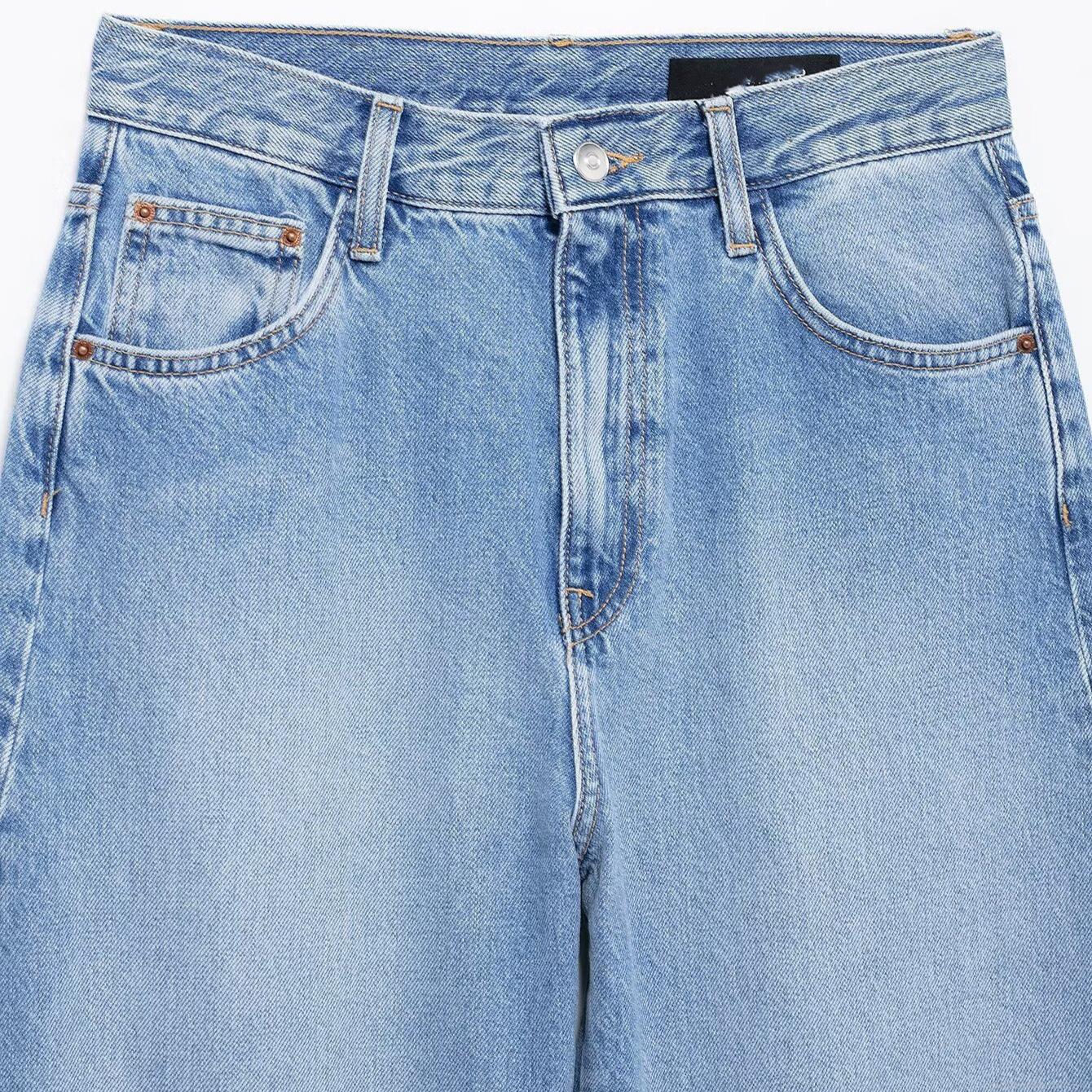 • Women's High Waist Denim Jeans Fashion Curved Silhouette Washed Cotton Blend Pants Casual Loose Streetwear Trousers For Women Lady Blue