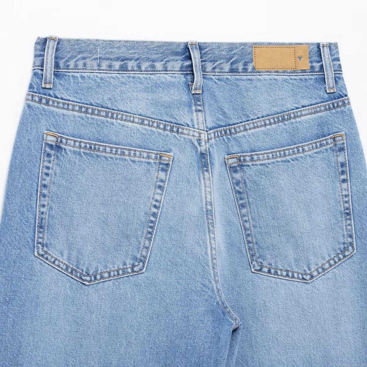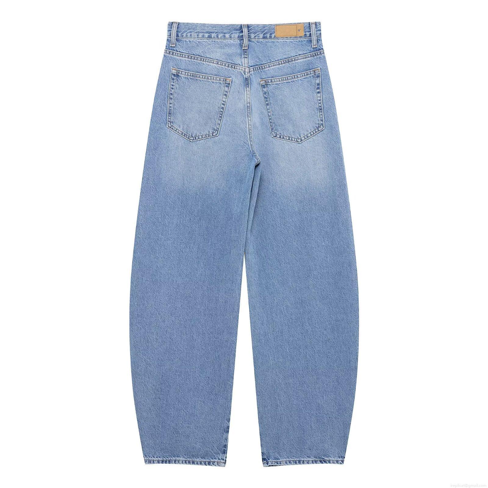 Women's High Waist Denim Jeans Fashion Curved Silhouette Washed Cotton Blend Pants Casual Loose Streetwear Trousers For Women Lady Blue