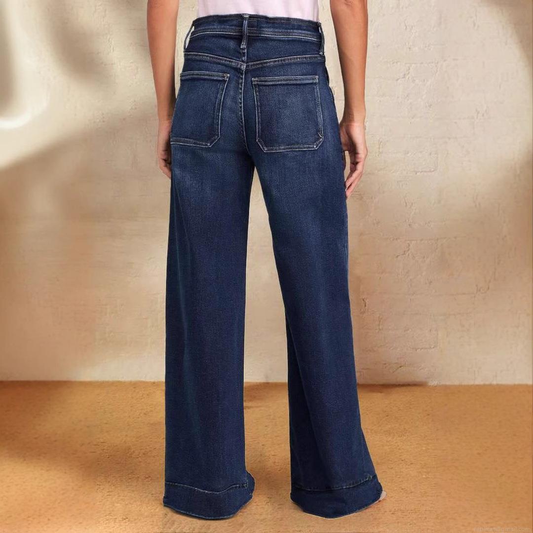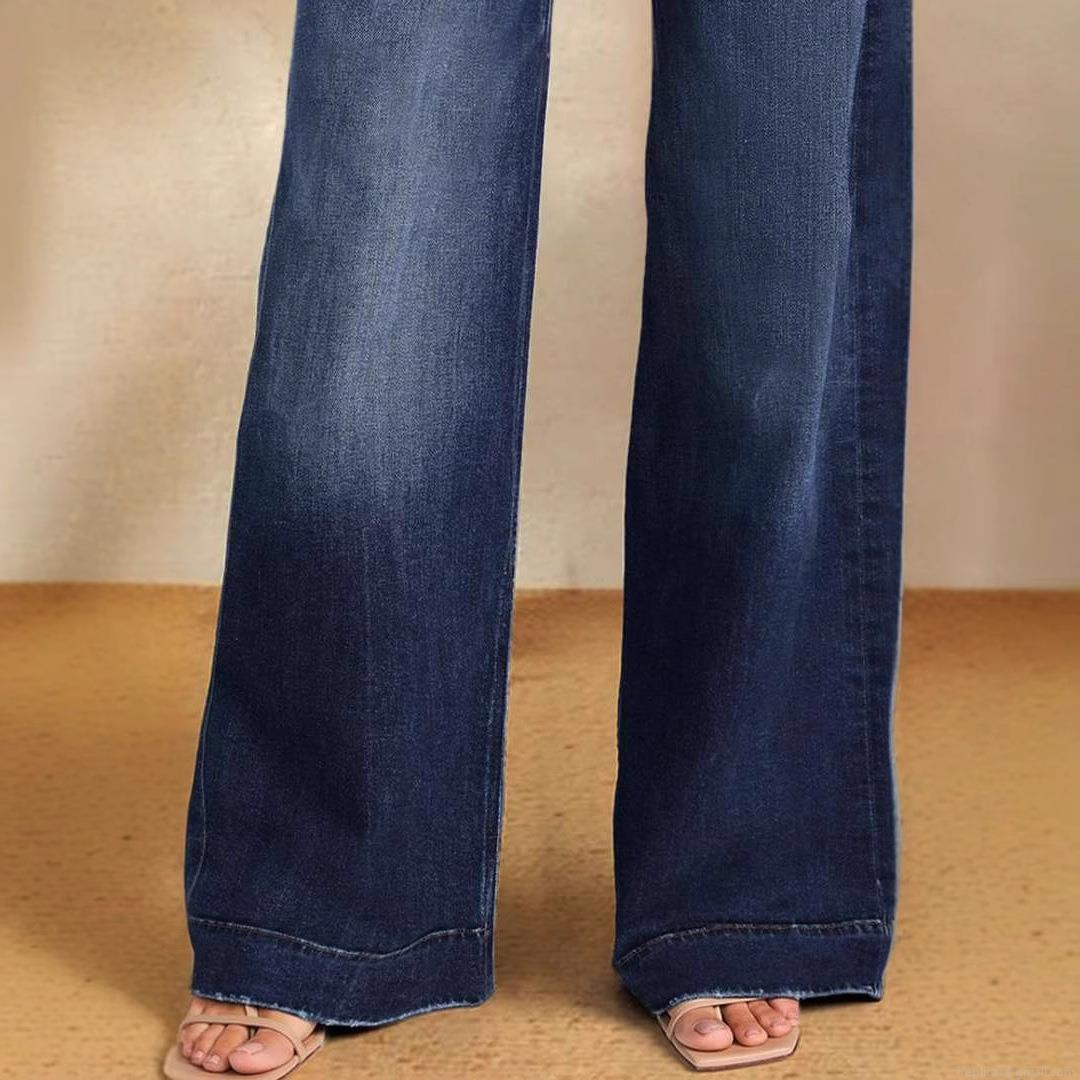 • Women's High Waist Drawstring Denim Jeans High Stretch Polyester Blend Wide Leg Straight Leg Trousers Spring Sexy Streetwear Washed Frayed Hem Pants