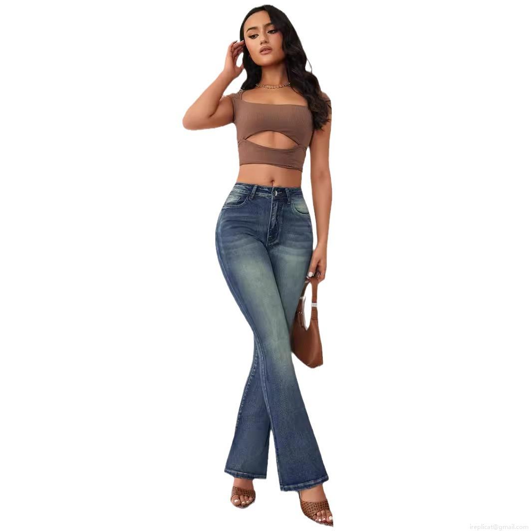 • Women's High Waist Flare Jeans Distressed Denim Bell Bottom Trousers Retro Slim Fit Stretchy Patchwork Embroidery Long Pants