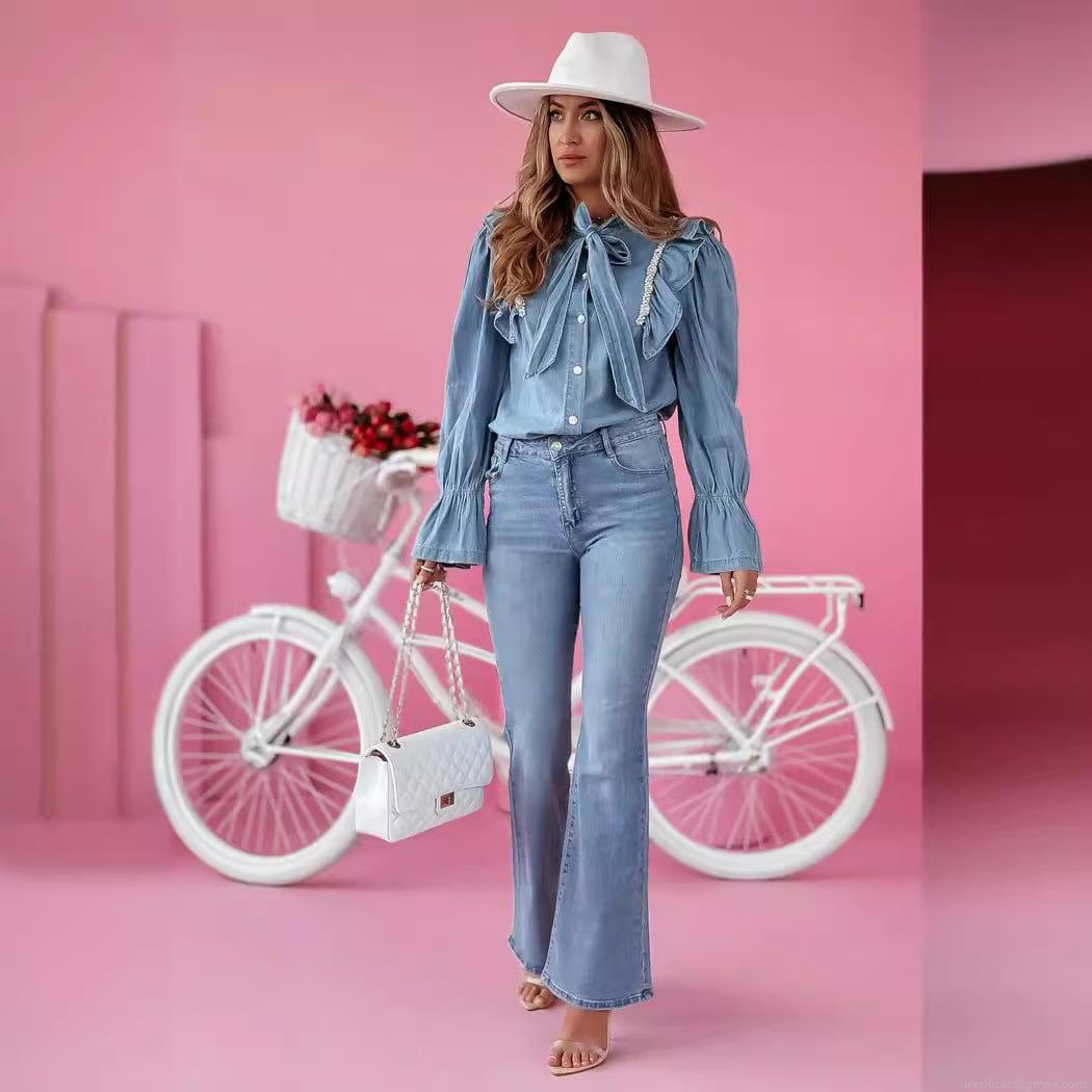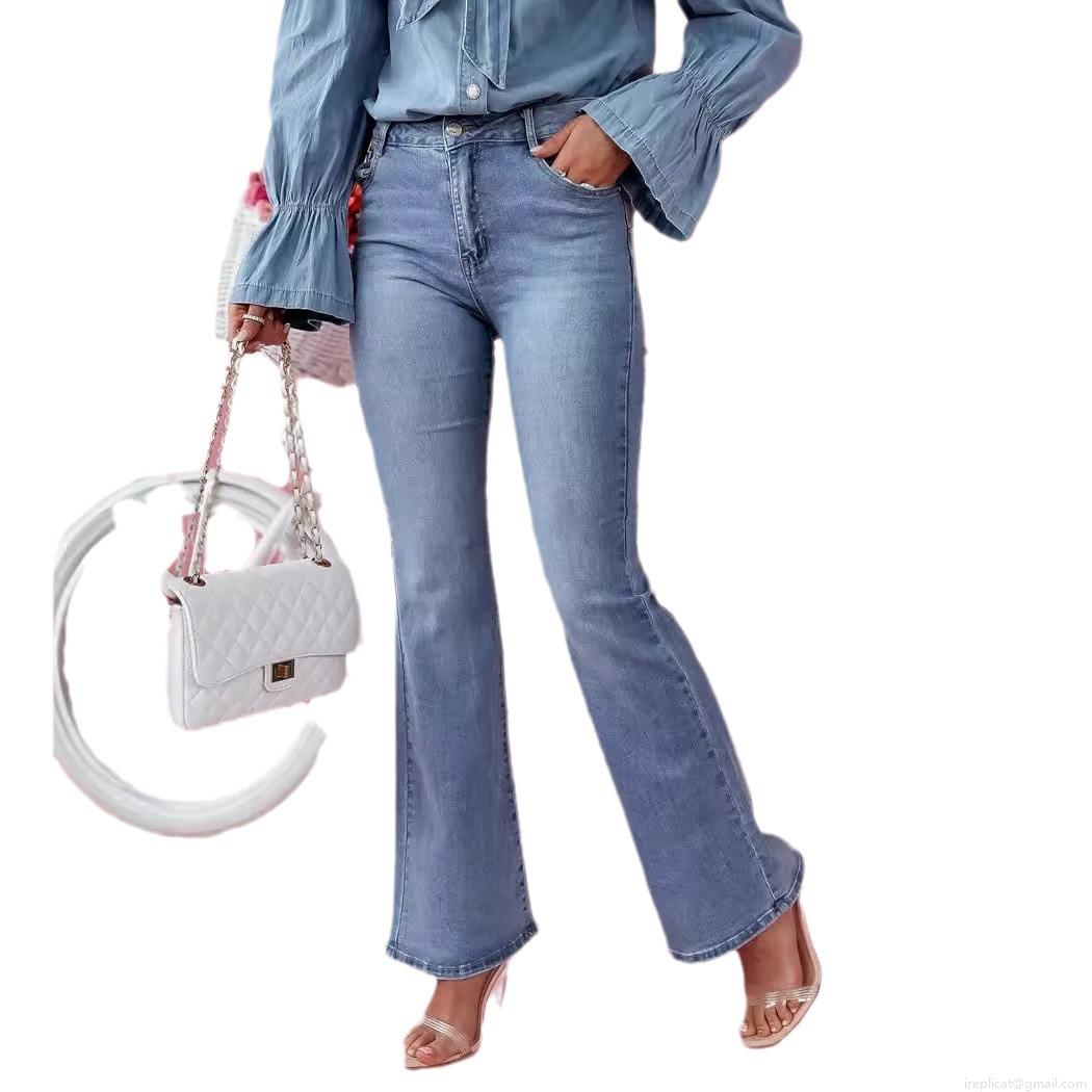 • Women's High Waist Flared Jeans Blue Washed Denim Long Pants Slim Fit Stretchy Bell Bottom Trousers for Summer Fashion Commute Casual Elegant Streetwear