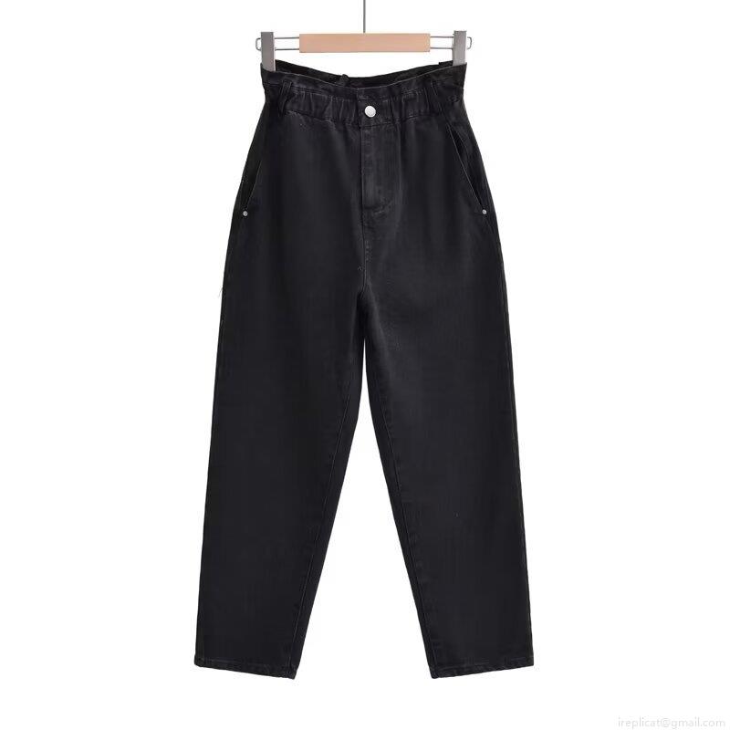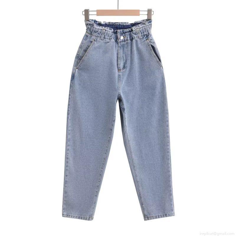 • Women's High Waist Paperbag Denim Pants Loose Fit Straight Leg Cotton Blend Solid Color Washed Casual Streetwear Jeans For Women