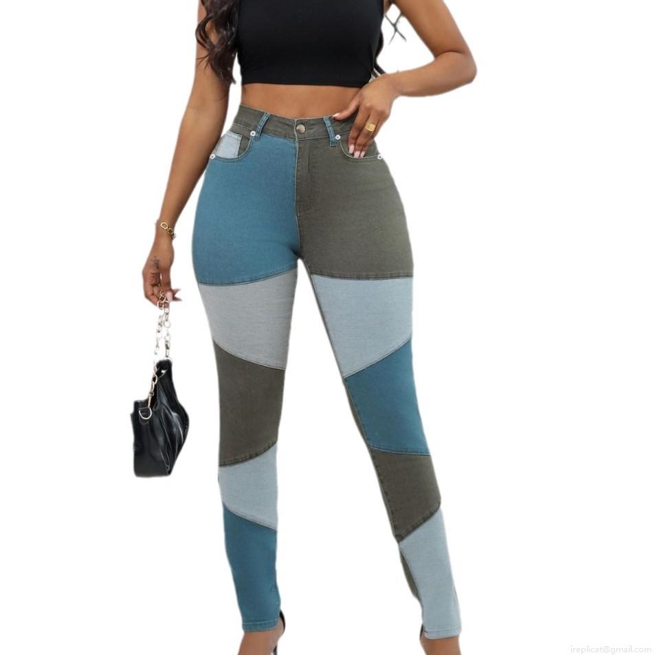 Women's High Waist Patchwork Skinny Jeans Slim Fit High Stretch Color Block Denim Trousers Shaping Streetwear Trousers Cotton Blend Pants