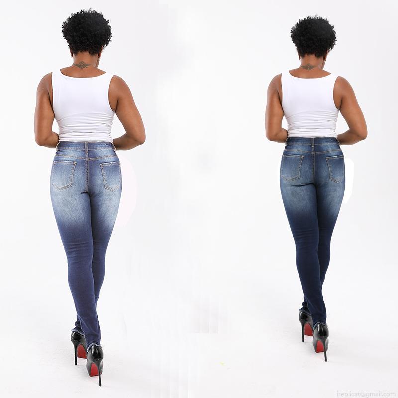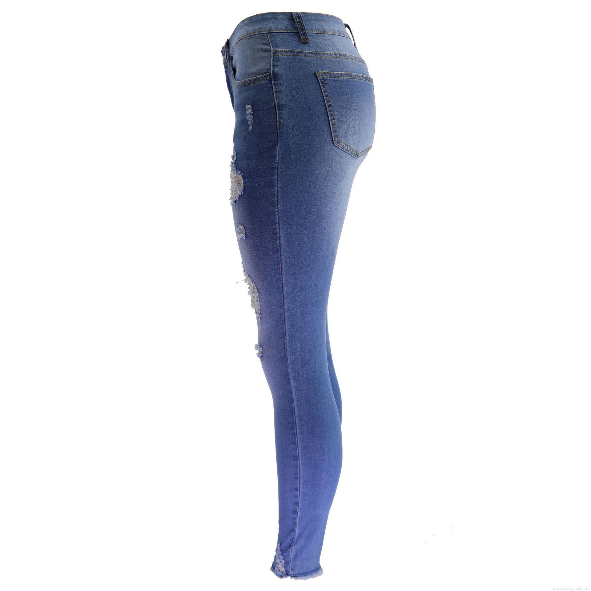Women's High Waist Ripped Skinny Jeans Distressed Denim Pants With Frayed Hem Faded Blue Slim Fit Stretch Trousers For Streetwear Fashion Women