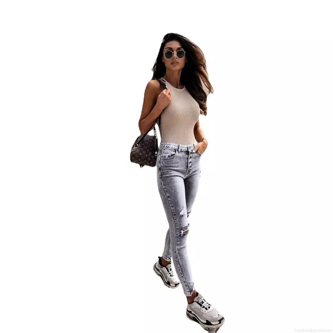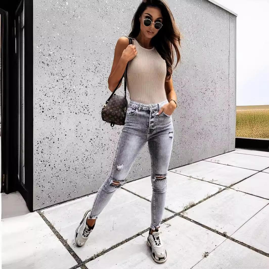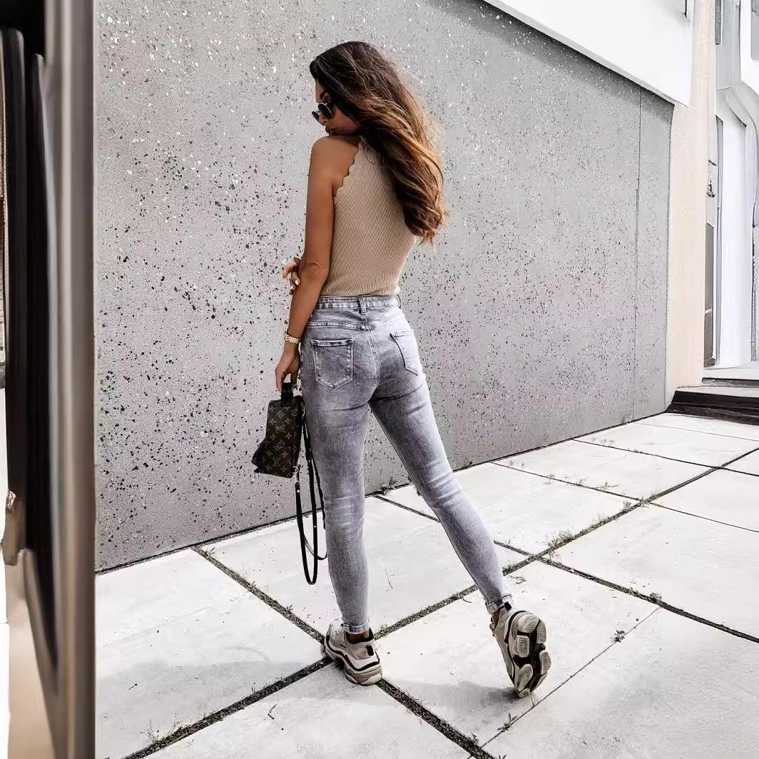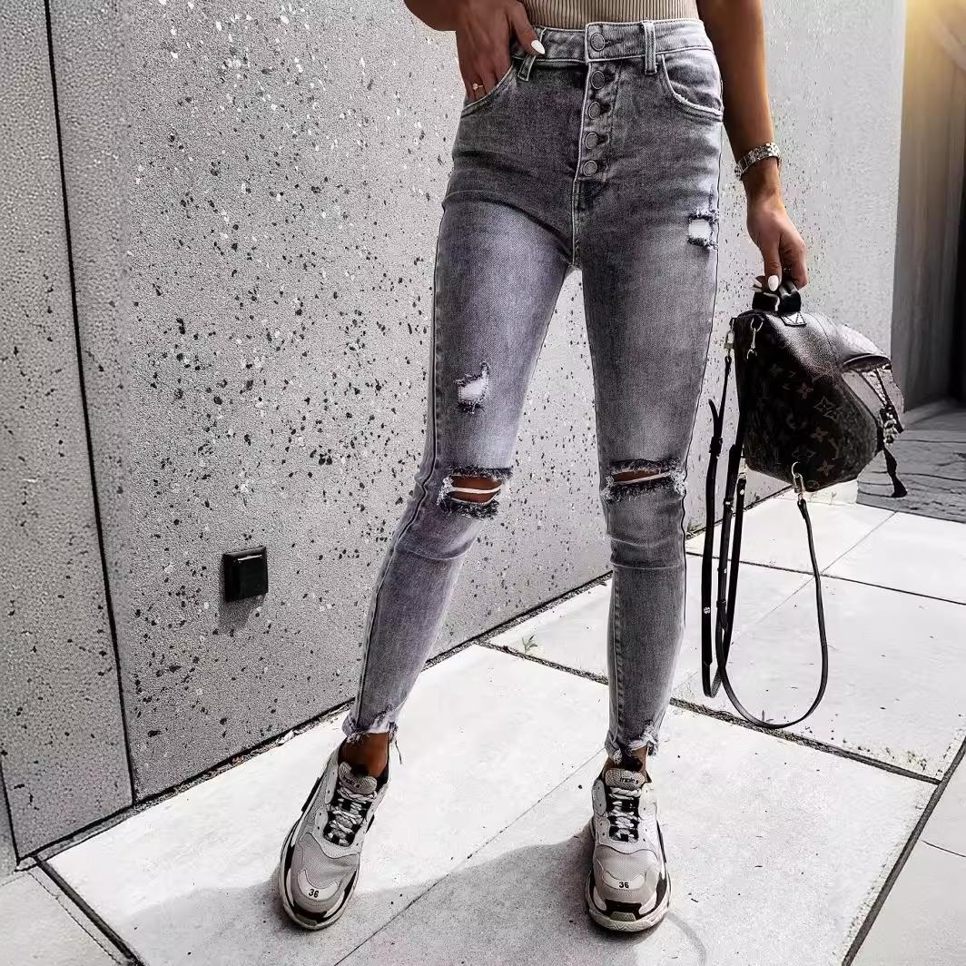 Women's High Waist Ripped Skinny Jeans Distressed Slim Fit Denim Pencil Pants Casual Streetwear Long Trousers for Ladies