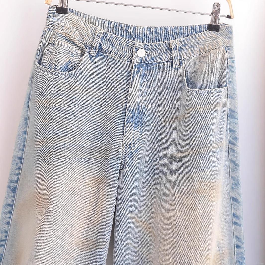• Women's High Waist Ripped Straight Leg Jeans Distressed Washed Light Blue Denim Pants Retro Streetwear Style Loose Fit Cotton Blend Trousers Women Clothing