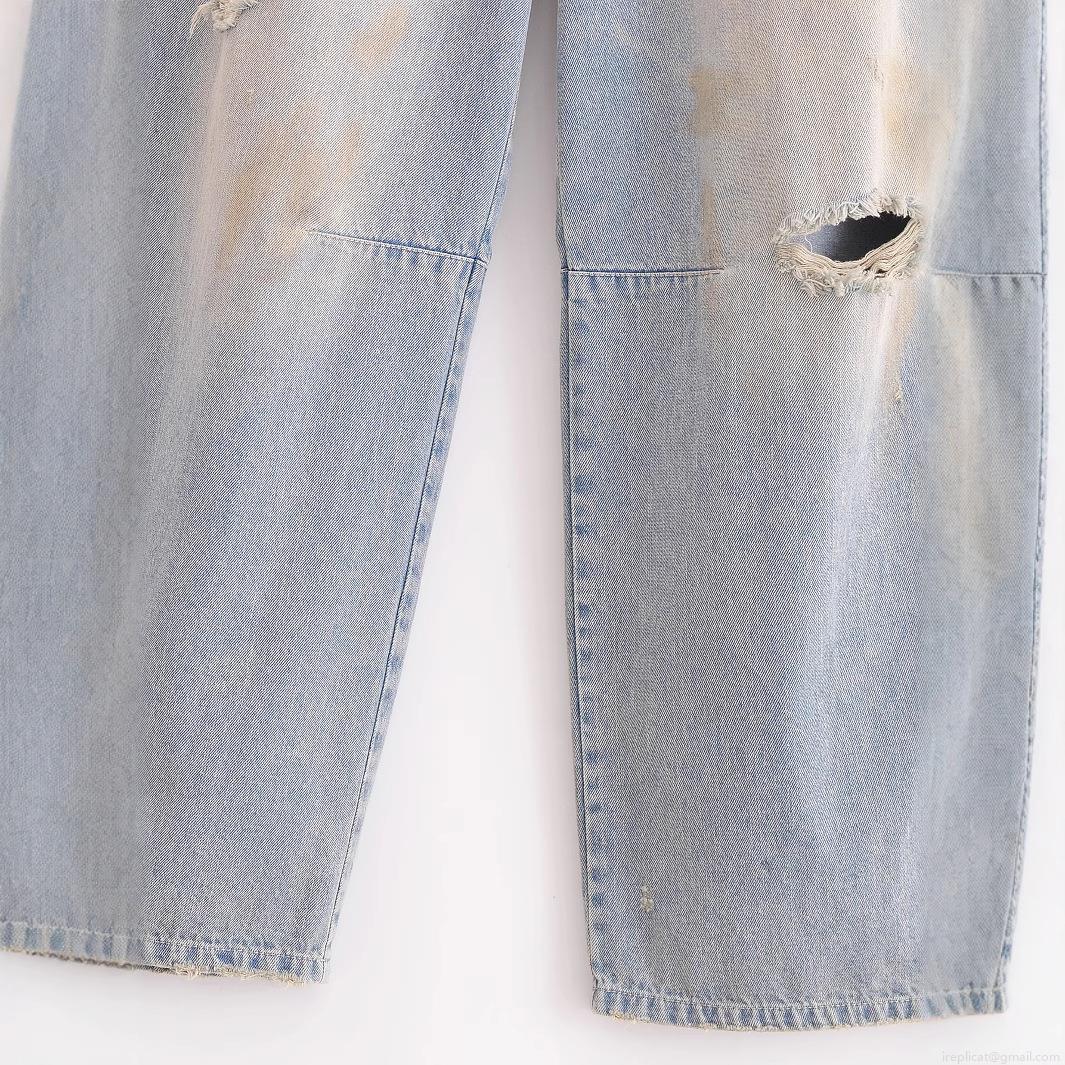 Solid Color, Hole, Zipper, Rough Edges, Water-washed Distressed, Whitening