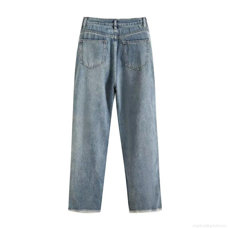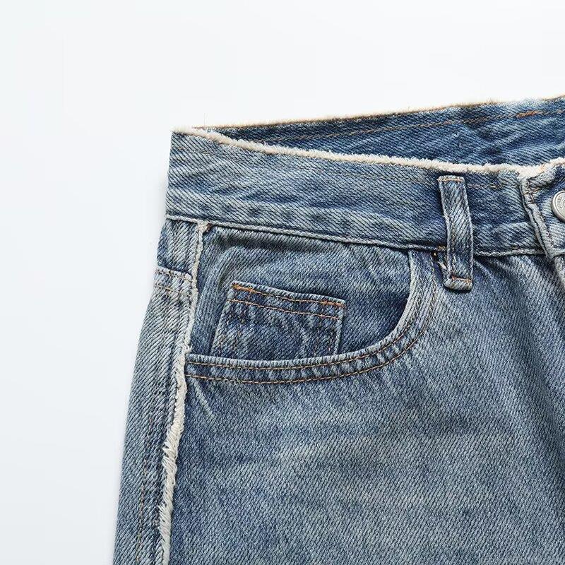 Solid Color, Rough Edges, Washing And Whitening, T-shaped Buckle, Outer Seam Splicing