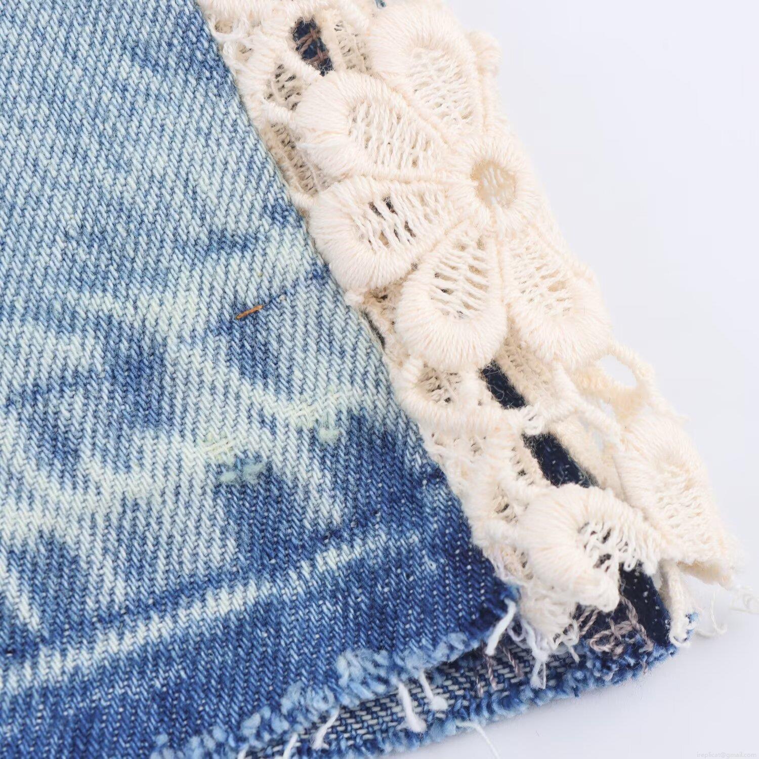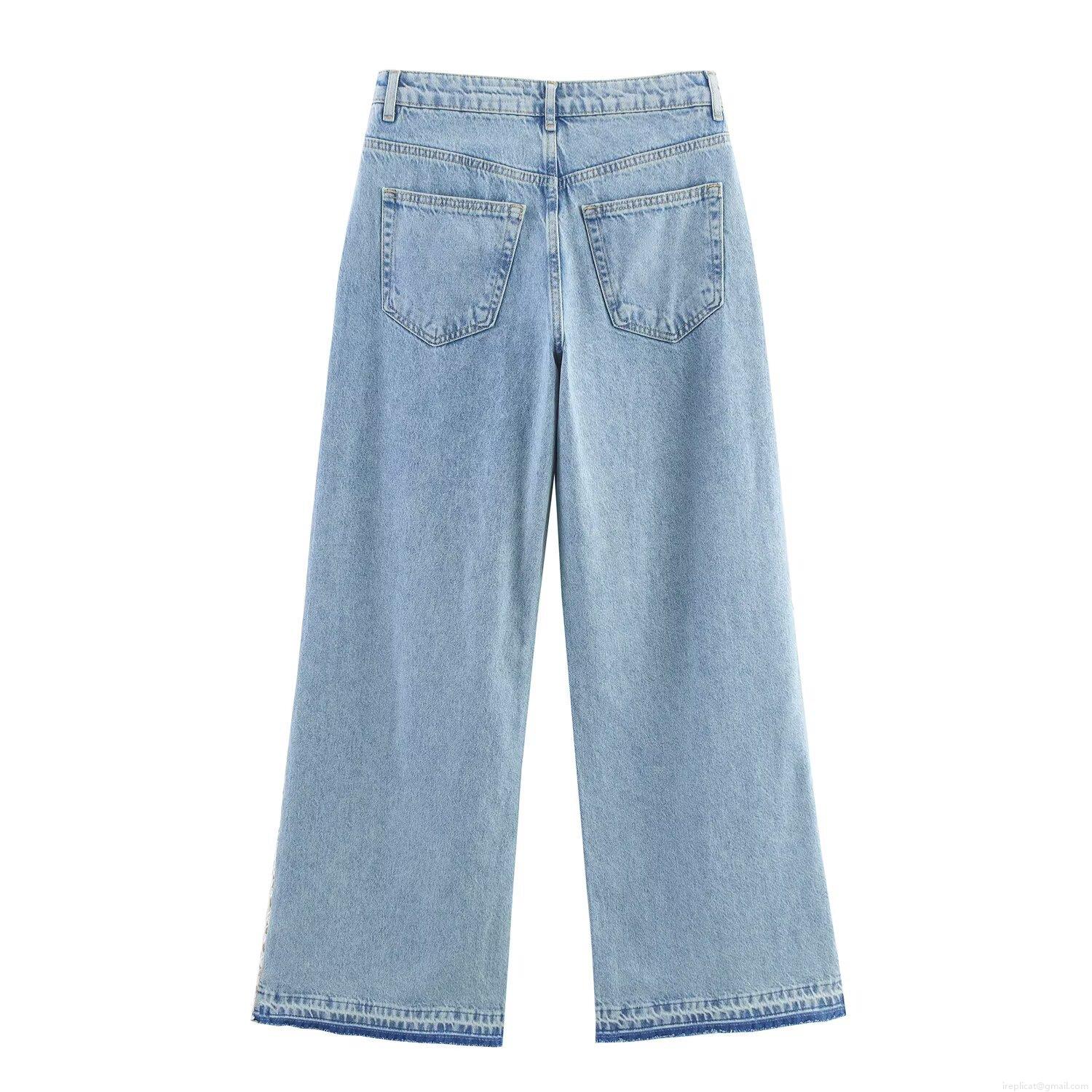 • Women's High Waist Wide Leg Denim Jeans With Exquisite Side White Lace Patchwork Light Blue Washed Baggy Long Denim Pants Sexy Retro Streetwear For Ladies