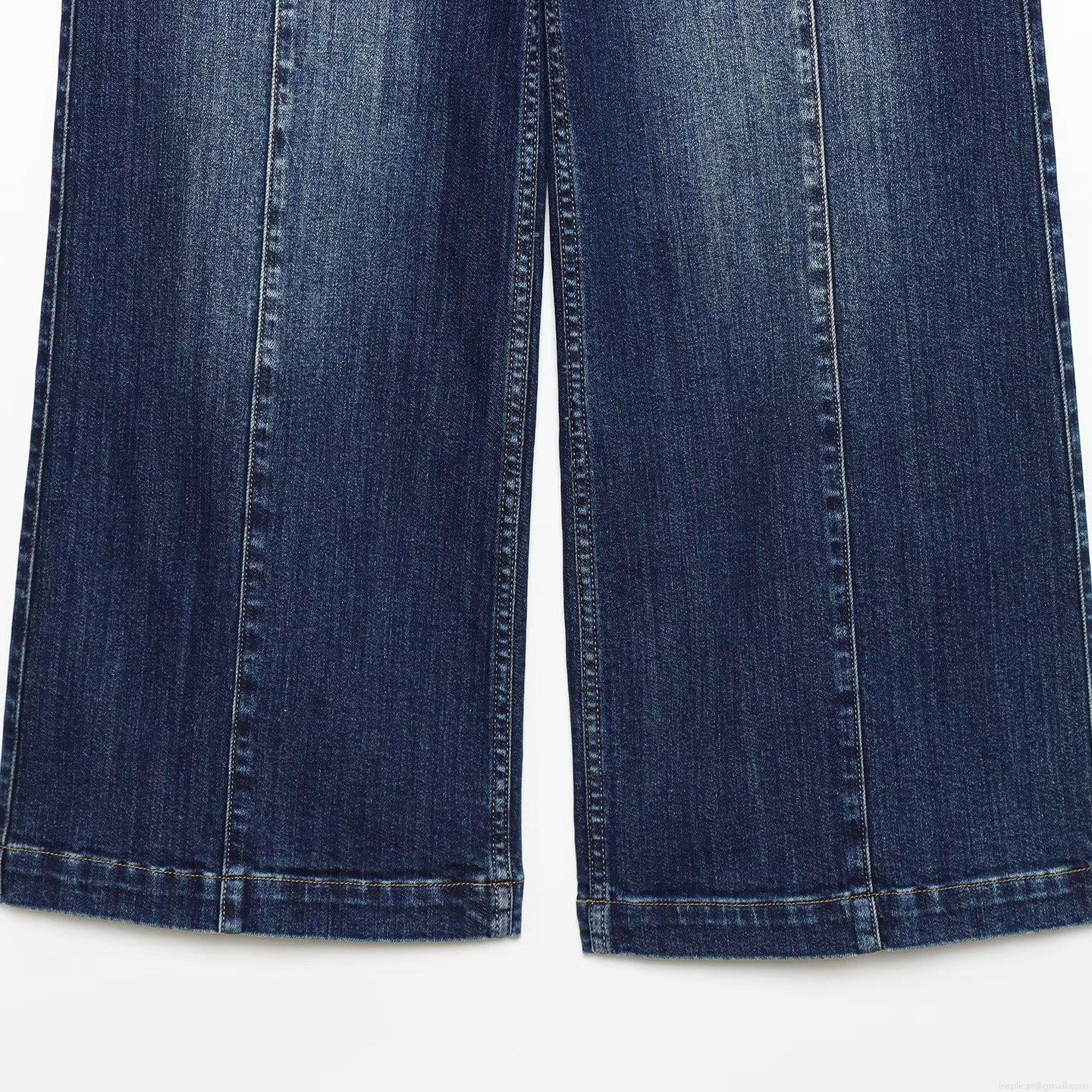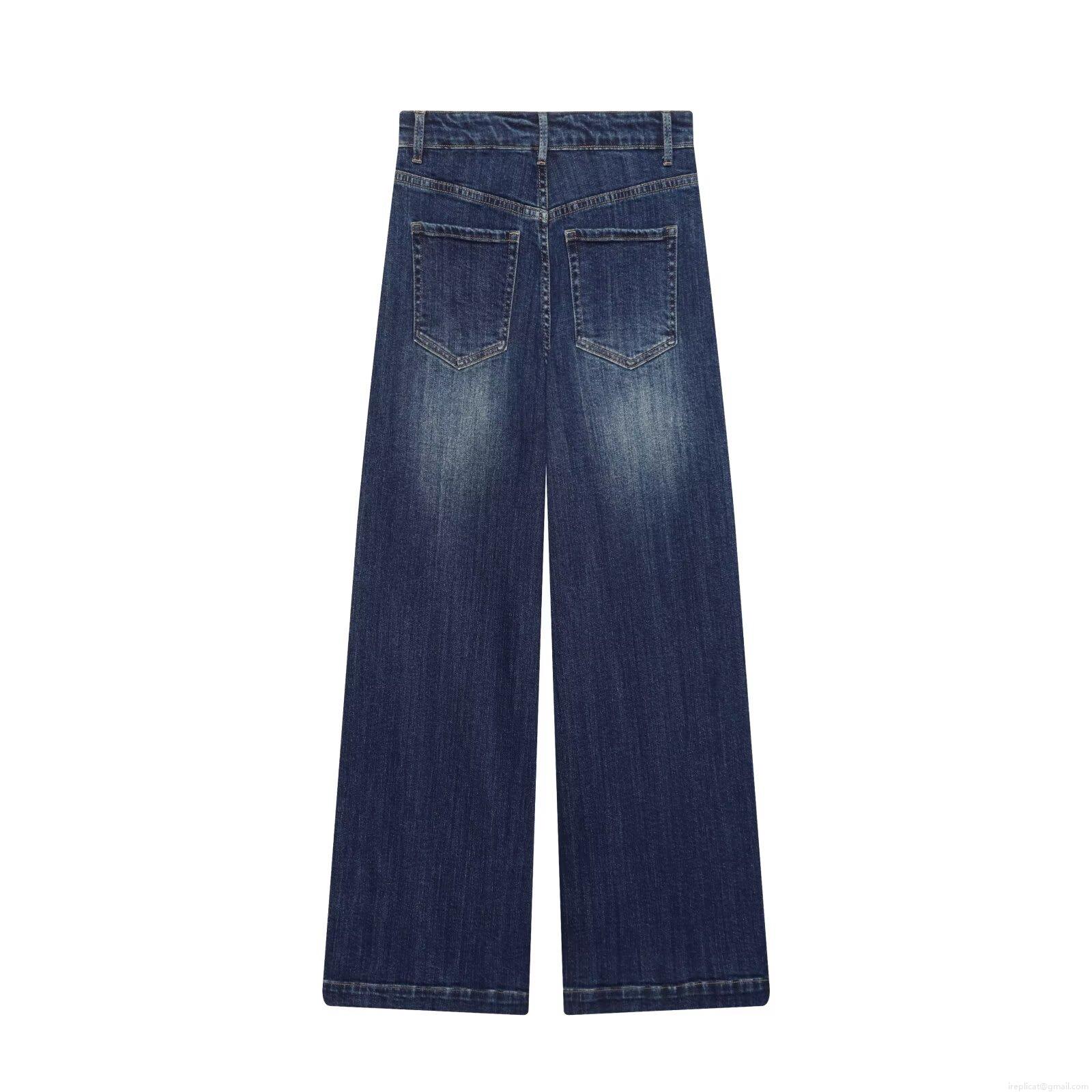 • Women's High Waist Wide Leg Jeans Cotton Spandex Denim Straight Trousers Solid Color Navy Blue Washed Denim Pants With Decorative Flap Pockets Casual Commuting Winter Fashion For Ladies