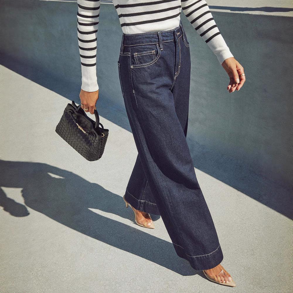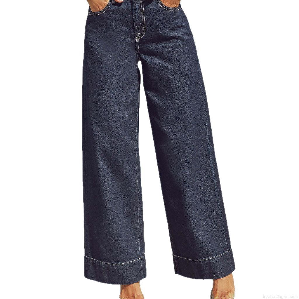 • Women's High Waist Wide Leg Jeans Washed Cotton Blend Denim Pants Long Trousers For Casual Streetwear Office Commute Lady Comfortable Fashionable Deep Blue Denim Jeans