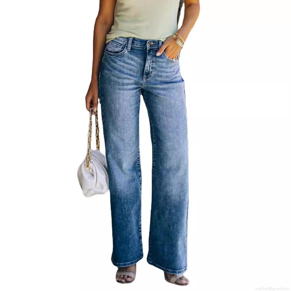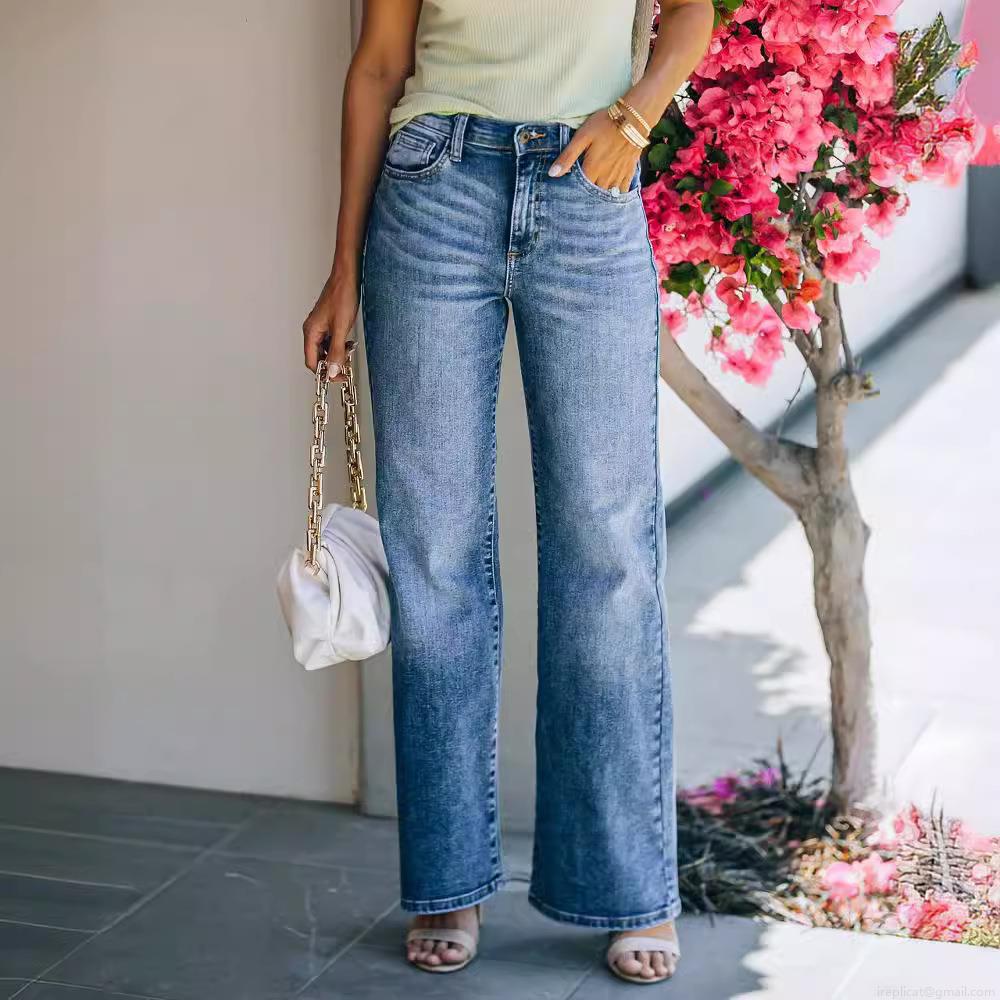 • Women's High Waist Wide Leg Jeans Washed Cotton Denim Pants Loose Fit Straight Trousers For Casual Daily Streetwear Lady