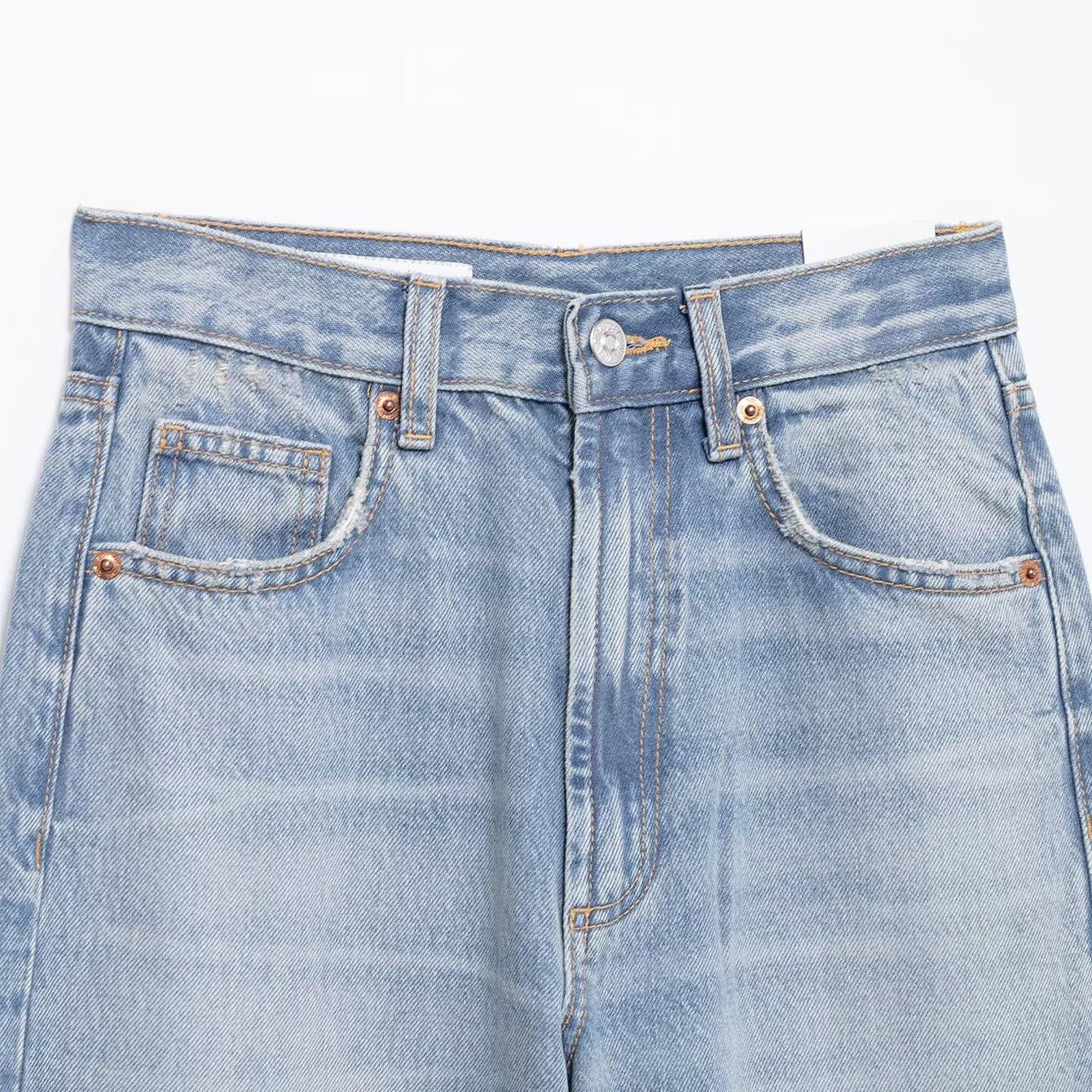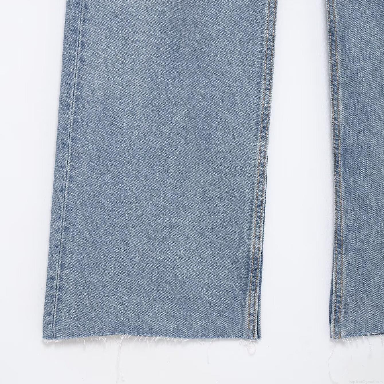 Solid Color, Washed Cat Whiskers, High-waisted Design, Wide-leg Cut, Ykk Zippers, Raw Hem Trousers