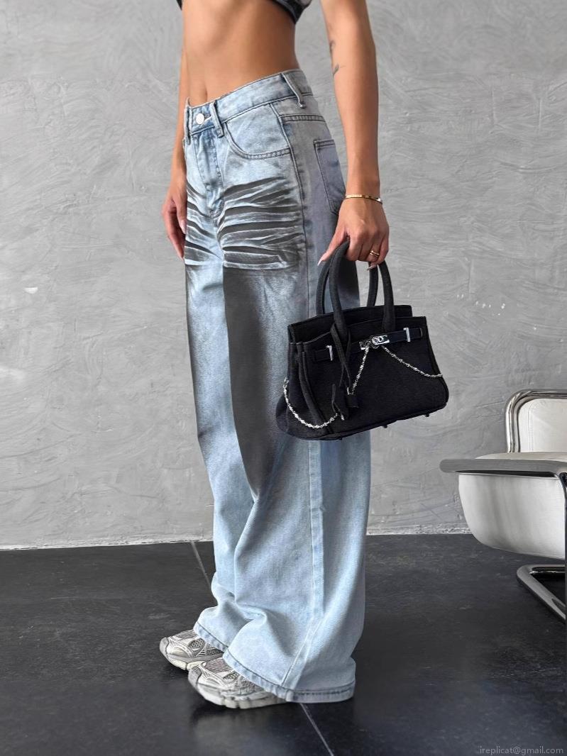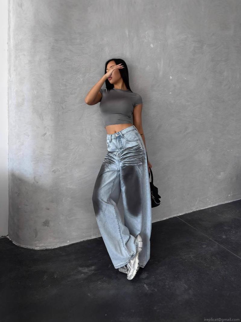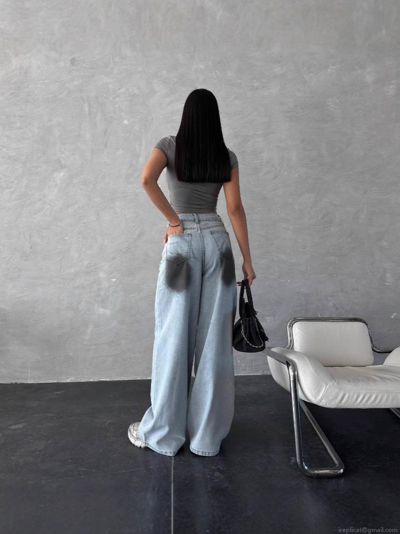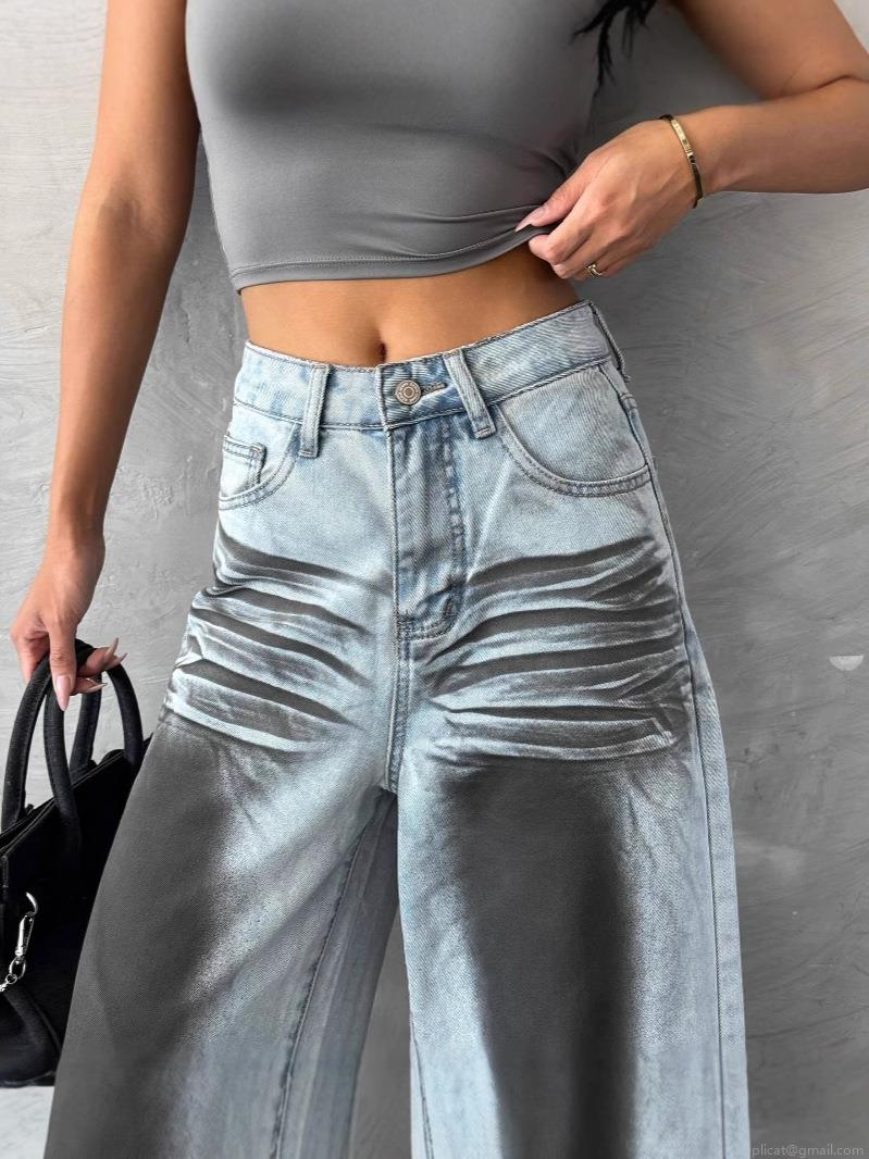 • Women's High Waist Wide Leg Jeans Washed Distressed Denim Pants American Streetwear Paint Spray Graffiti Straight Trousers Loose Casual Cotton Bottoms