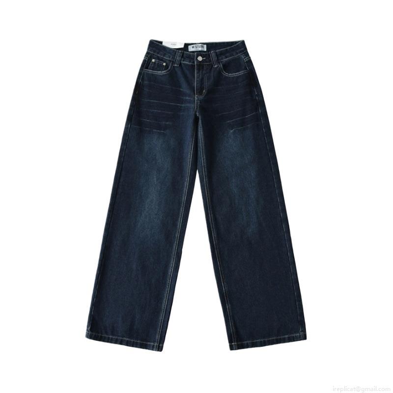 Solid Color, Zipper, High-waisted, Contrasting Stitching, Water Washing Process, Washed Cat Whiskers, Balloon Pattern