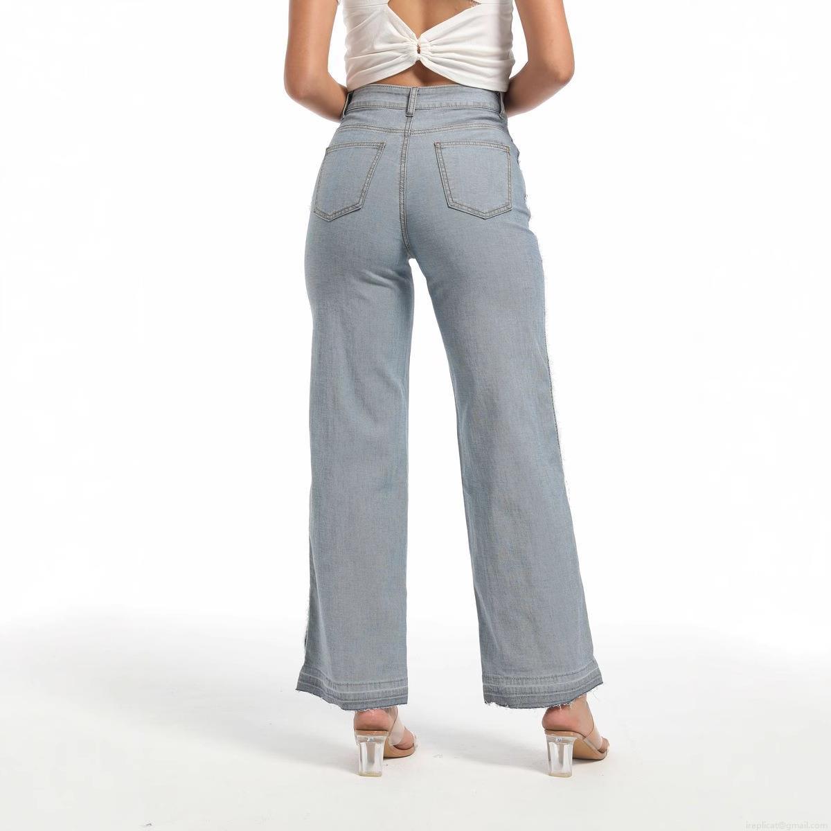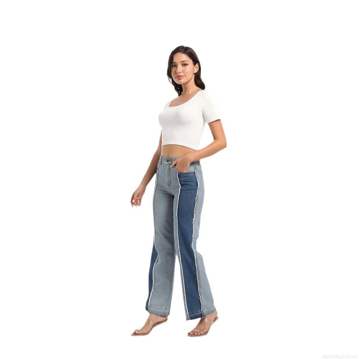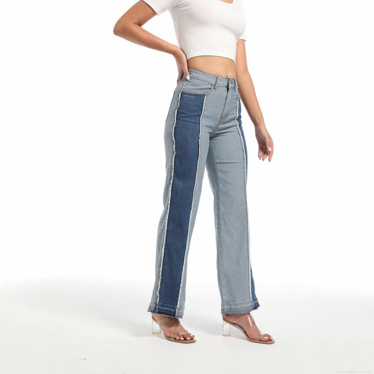 • Women's High Waisted Color Block Patchwork Straight Leg Jeans Stretchy Cotton Blend Denim Pants With Raw Hem Raw Edge Long Trousers Streetwear Casual For Ladies