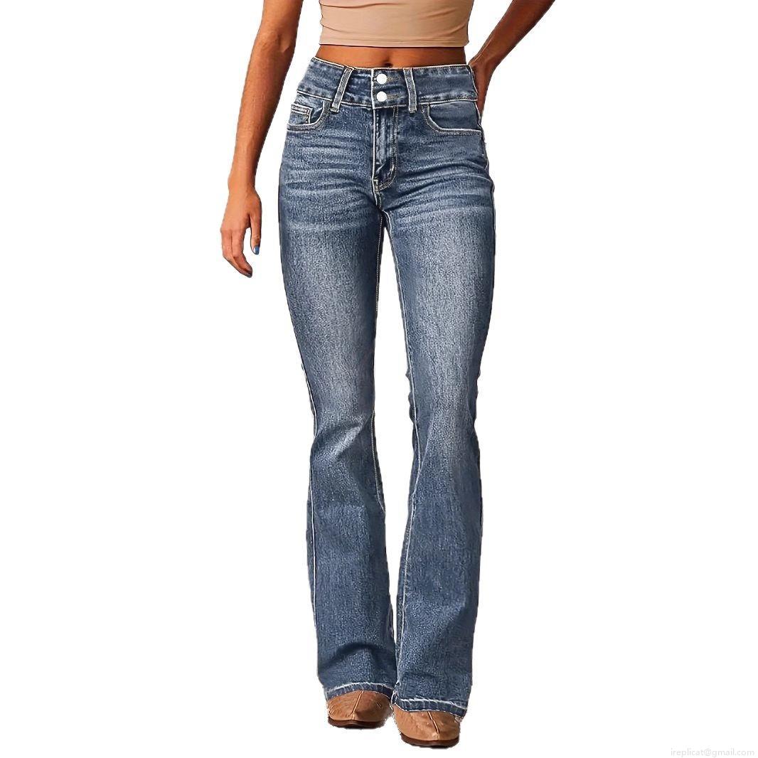 • Women's High Waisted Flare Jeans Vintage Double Button Stretch Cotton Blend Denim Pants Washed Slim Fit Bell Bottom Trousers for Daily Casual Streetwear