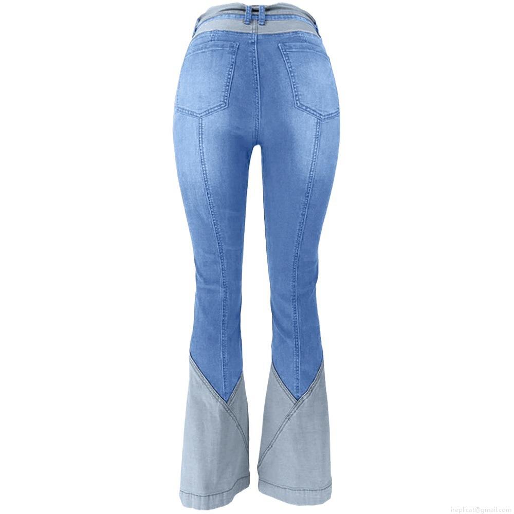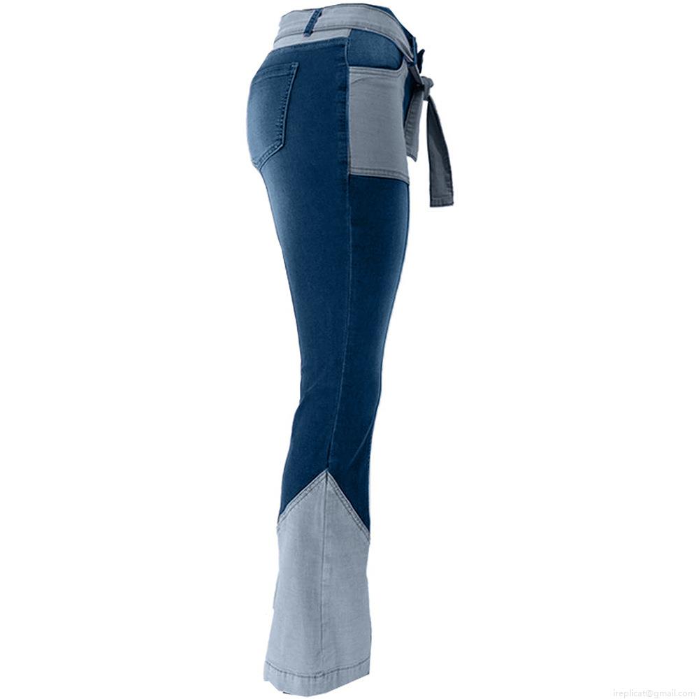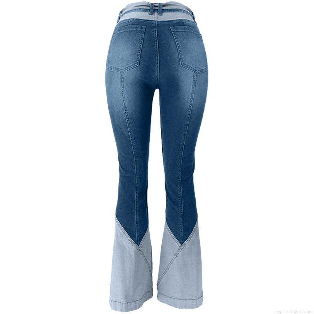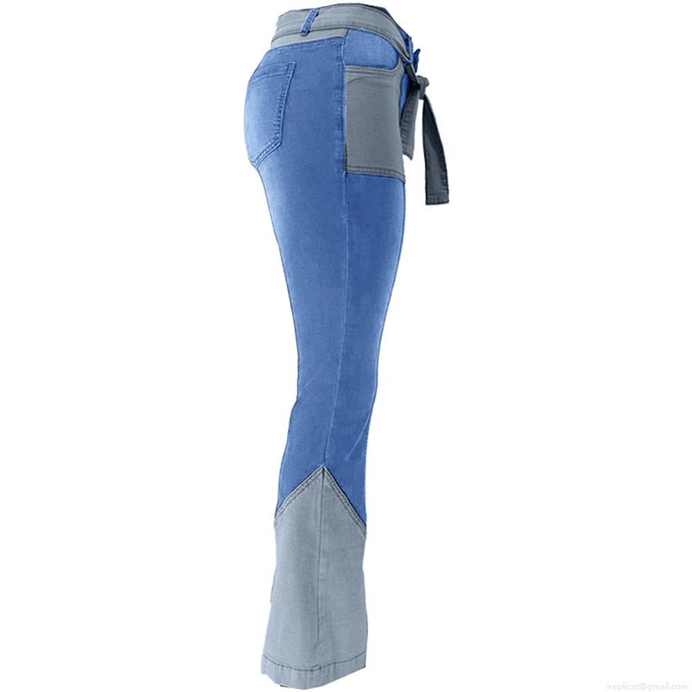• Women's High Waisted Patchwork Flare Jeans Cotton Blend Color Block Denim Bell Bottom Pants With Tie Belt