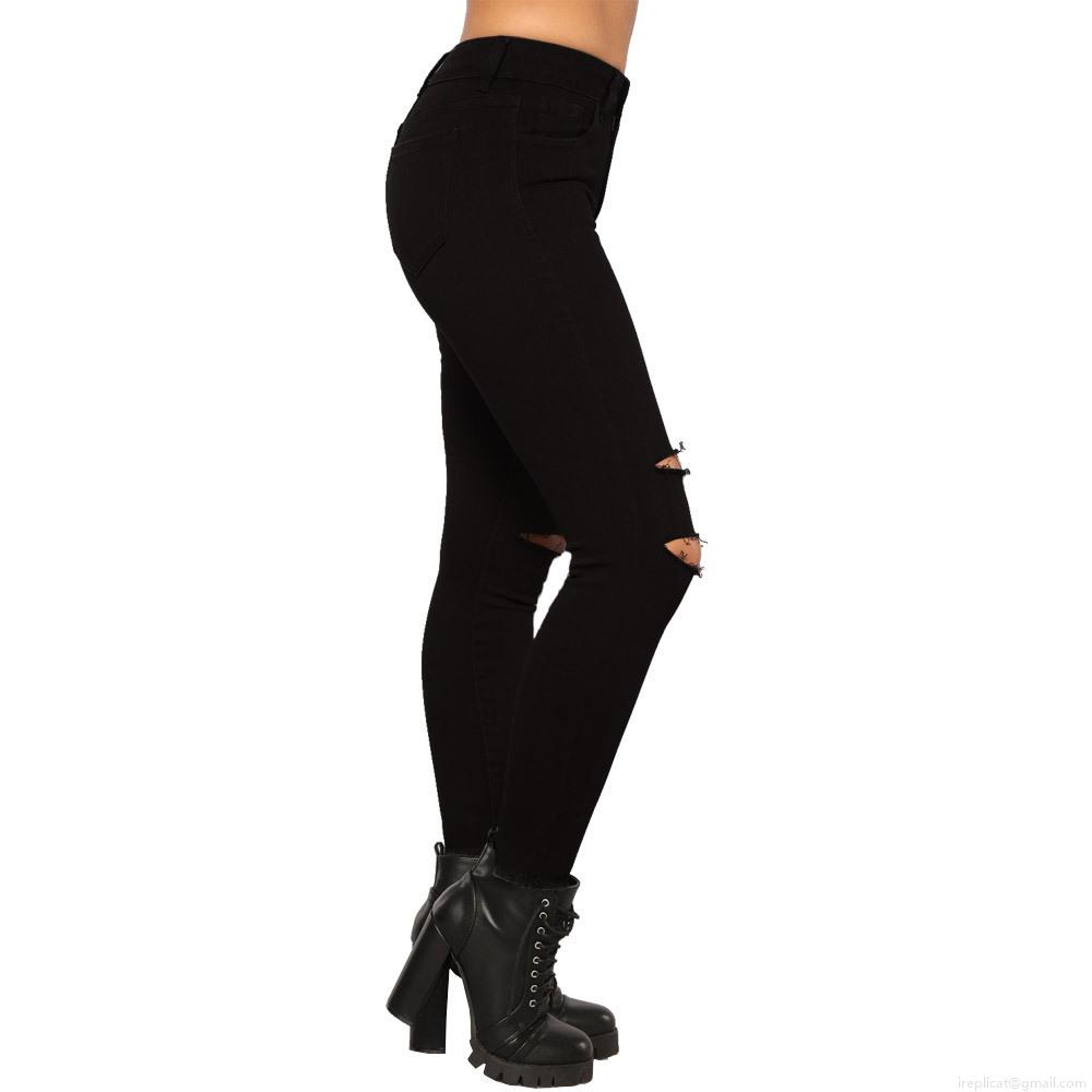 Women's High Waisted Ripped Skinny Jeans Distressed Destroyed Hole Cotton Blend Denim Pencil Pants Streetwear Black Long Trousers