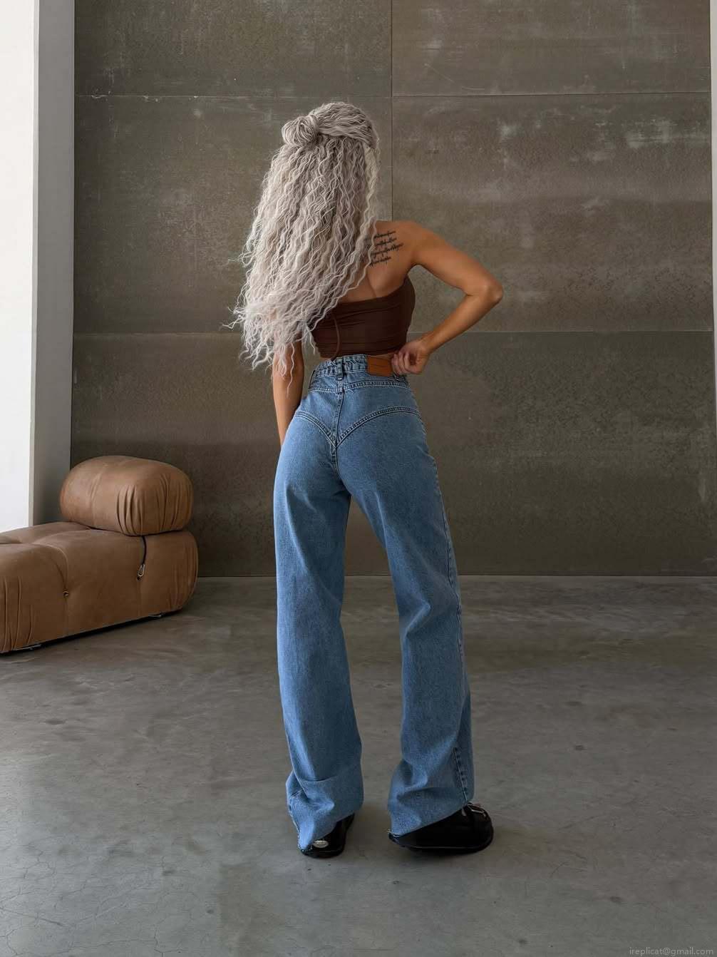 • Women's High Waisted Straight Leg Jeans 100% Cotton Denim Washed Wide Leg Pants V-Shape Back Seam Asymmetric Fly Streetwear American Retro Spicy Girl Casual Trousers