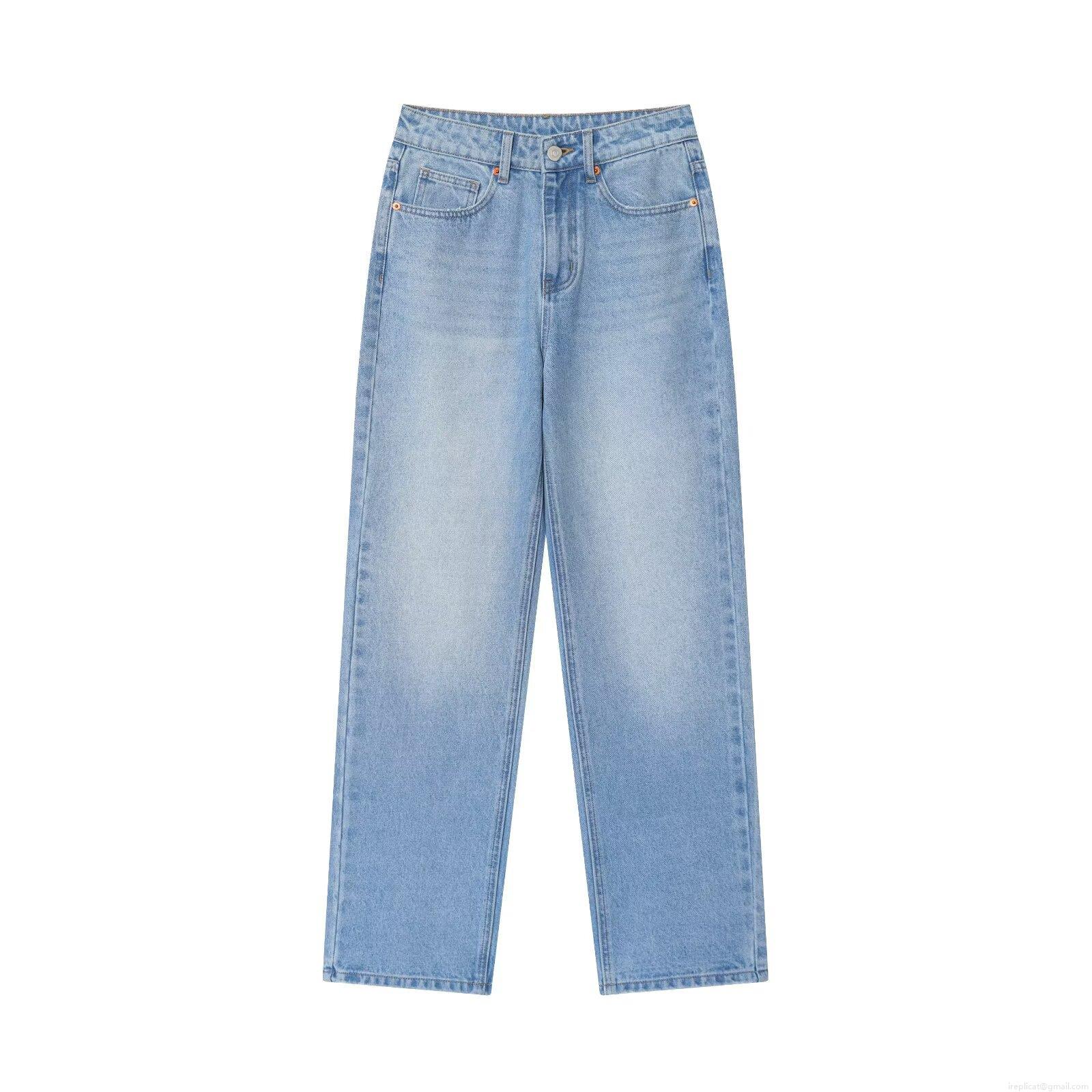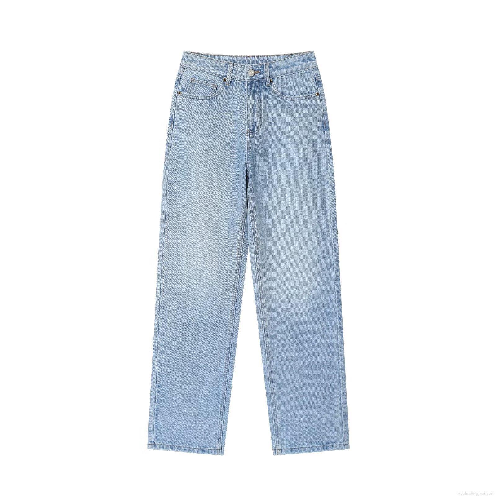 • Women's High Waisted Straight Leg Jeans Washed Denim Cotton Pants Casual Loose Fitting Trousers With Distressed Hem For Daily Streetwear
