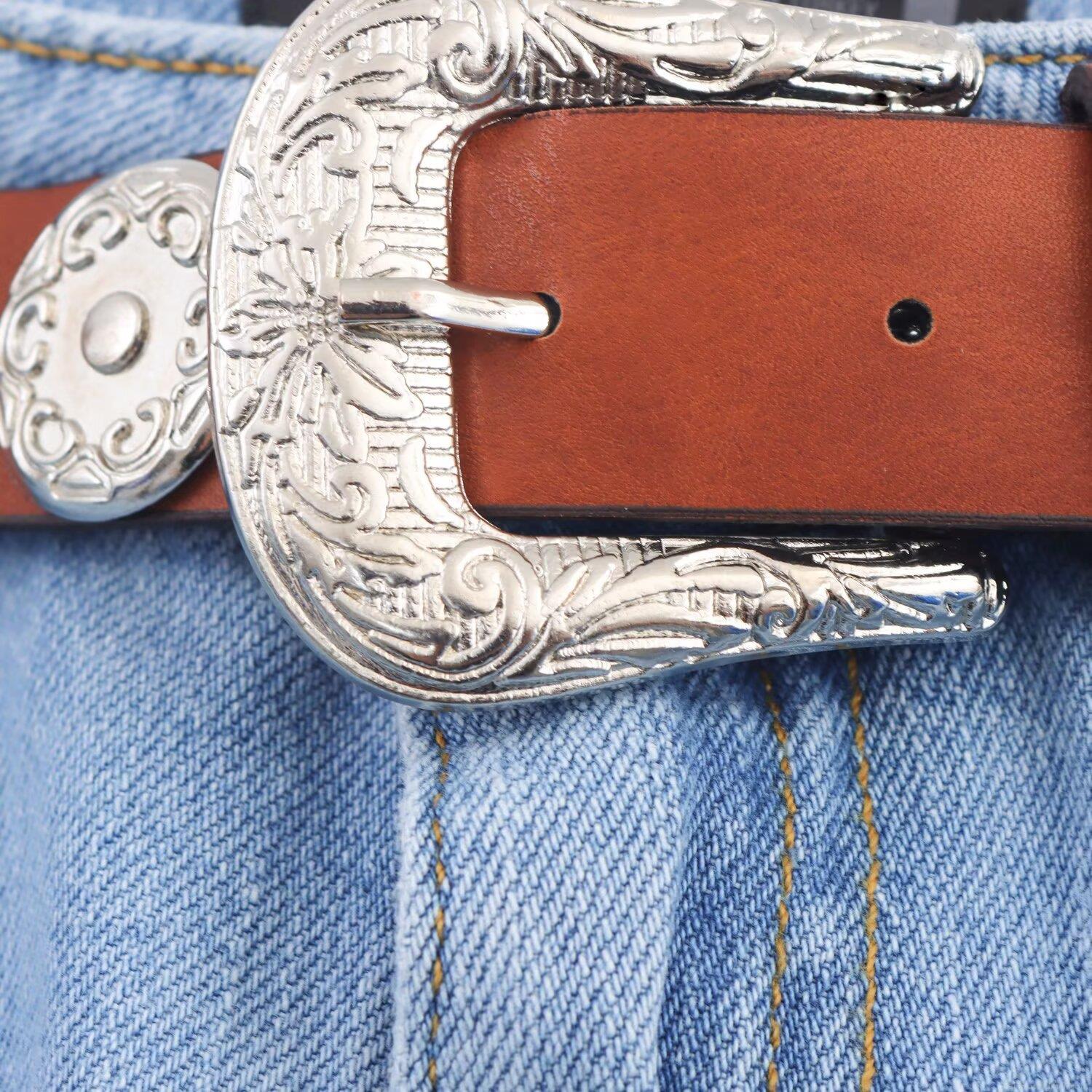 Solid Color, Water Wash, Retro Metal Buckle, With Belt