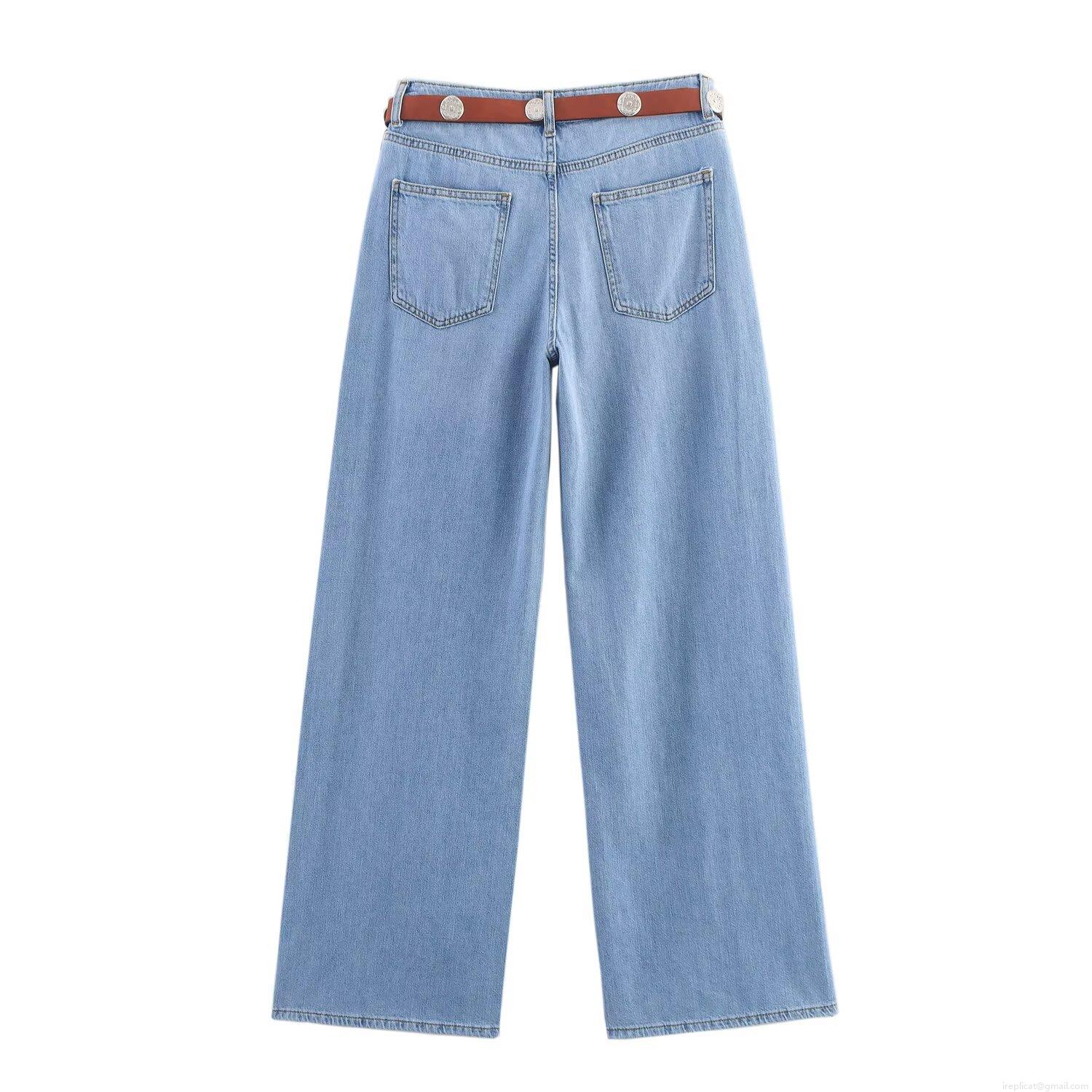 • Women's High Waisted Straight Leg Jeans With Brown Belt Fashion Casual Light Blue Denim Pants Cotton Blend Loose Wide Leg Trousers For Women Daily Wear