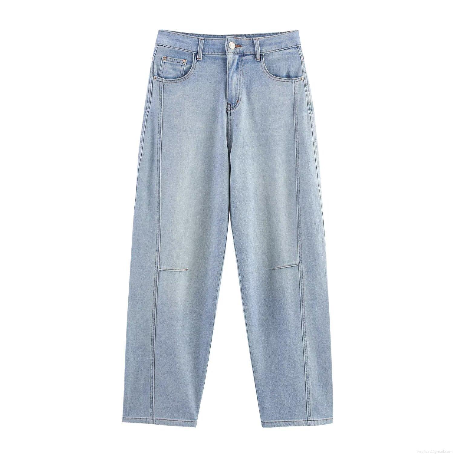 • Women's High Waisted Wide Leg Denim Jeans Vintage Washed Straight Leg Pants Casual Summer Soft Stretch Cotton Blend Trousers For Women Light Blue