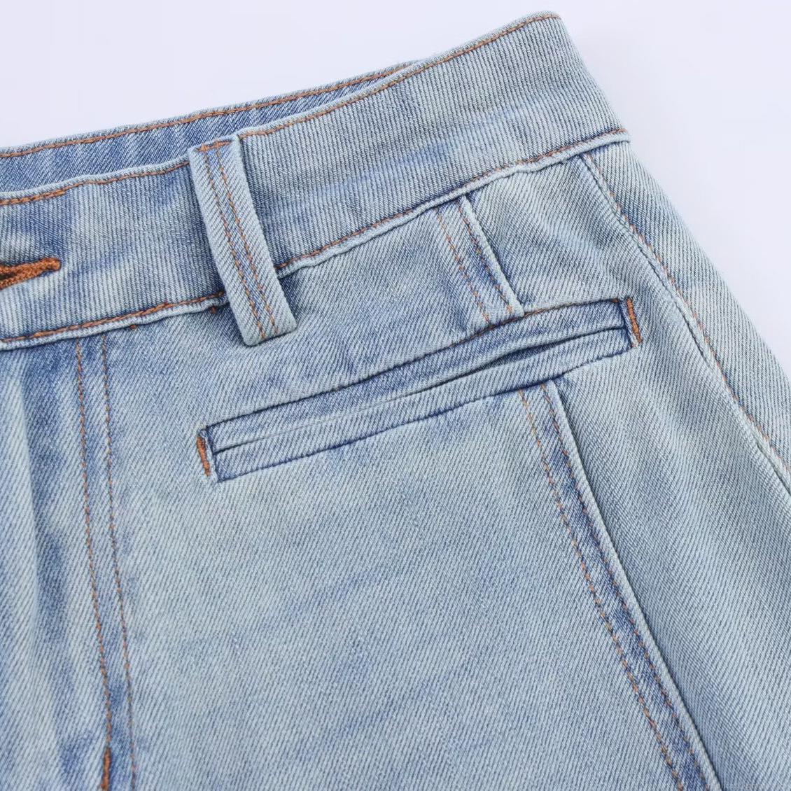 Solid Color, Water Wash, Straight Tube, Wide-leg, High-waisted