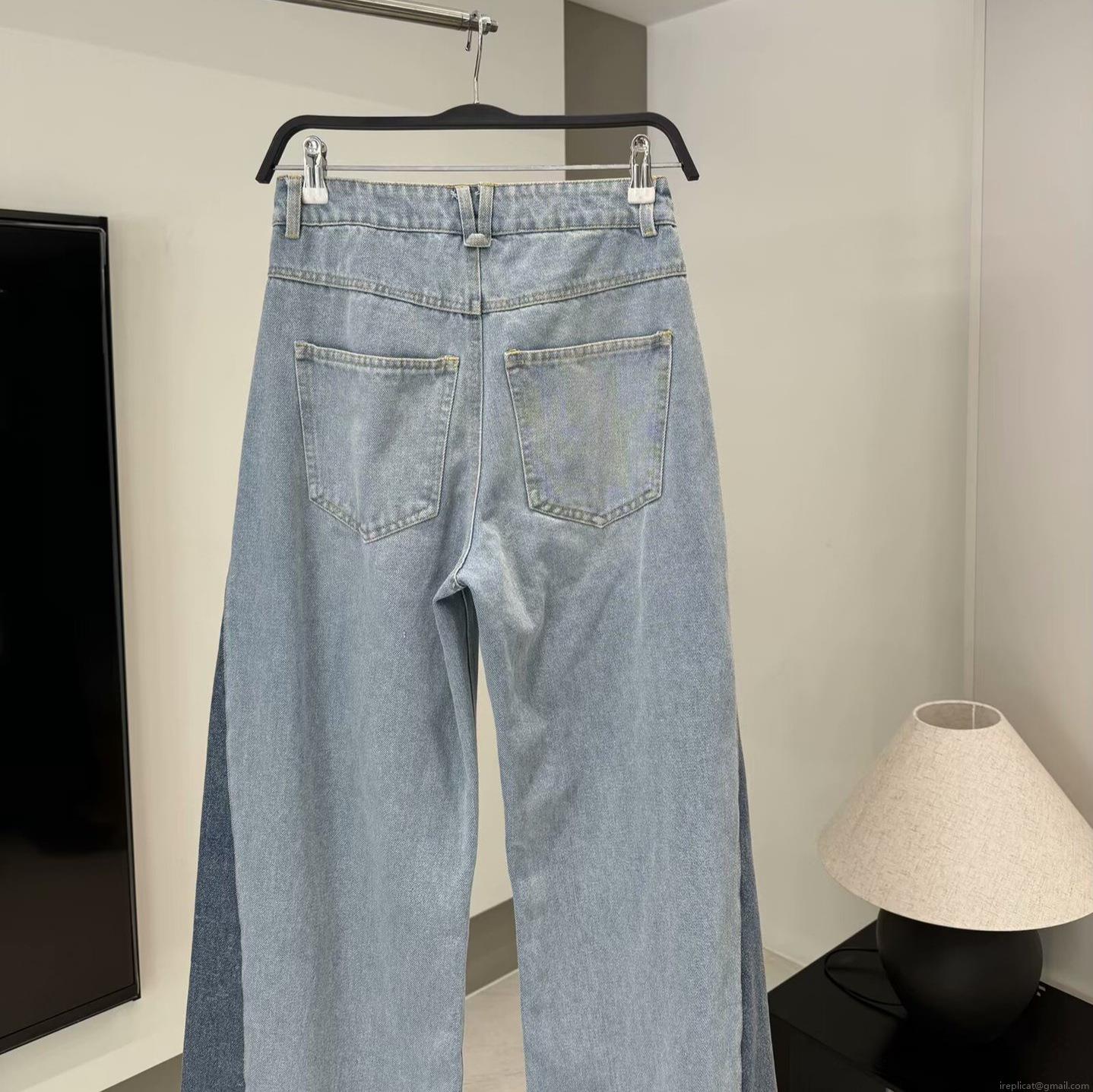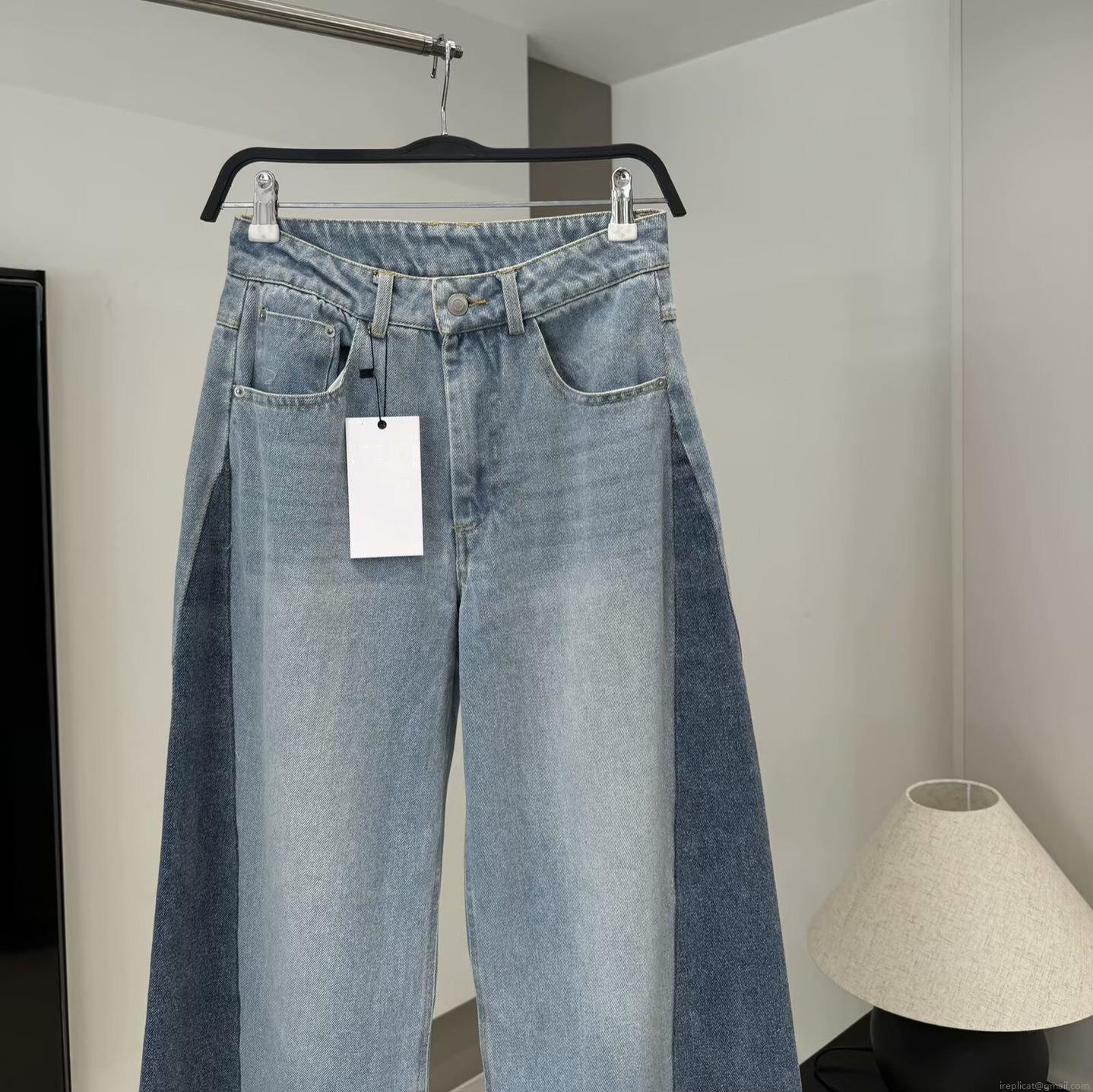 • Women's High Waisted Wide Leg Jeans Contrast Color Stitching Denim Pants Raw Hem Loose Straight Trousers Casual Fashion Streetwear Cotton Blend Denim For Ladies