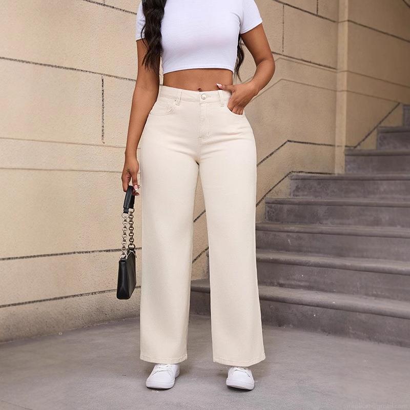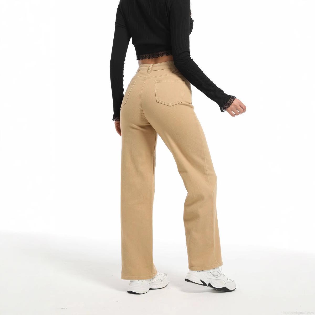 • Women's High Waisted Wide Leg Jeans Cotton Blend High Stretch Denim Trousers Solid Color Casual Loose Straight Leg Pants For Daily Commute Office Wear Apricot Khaki