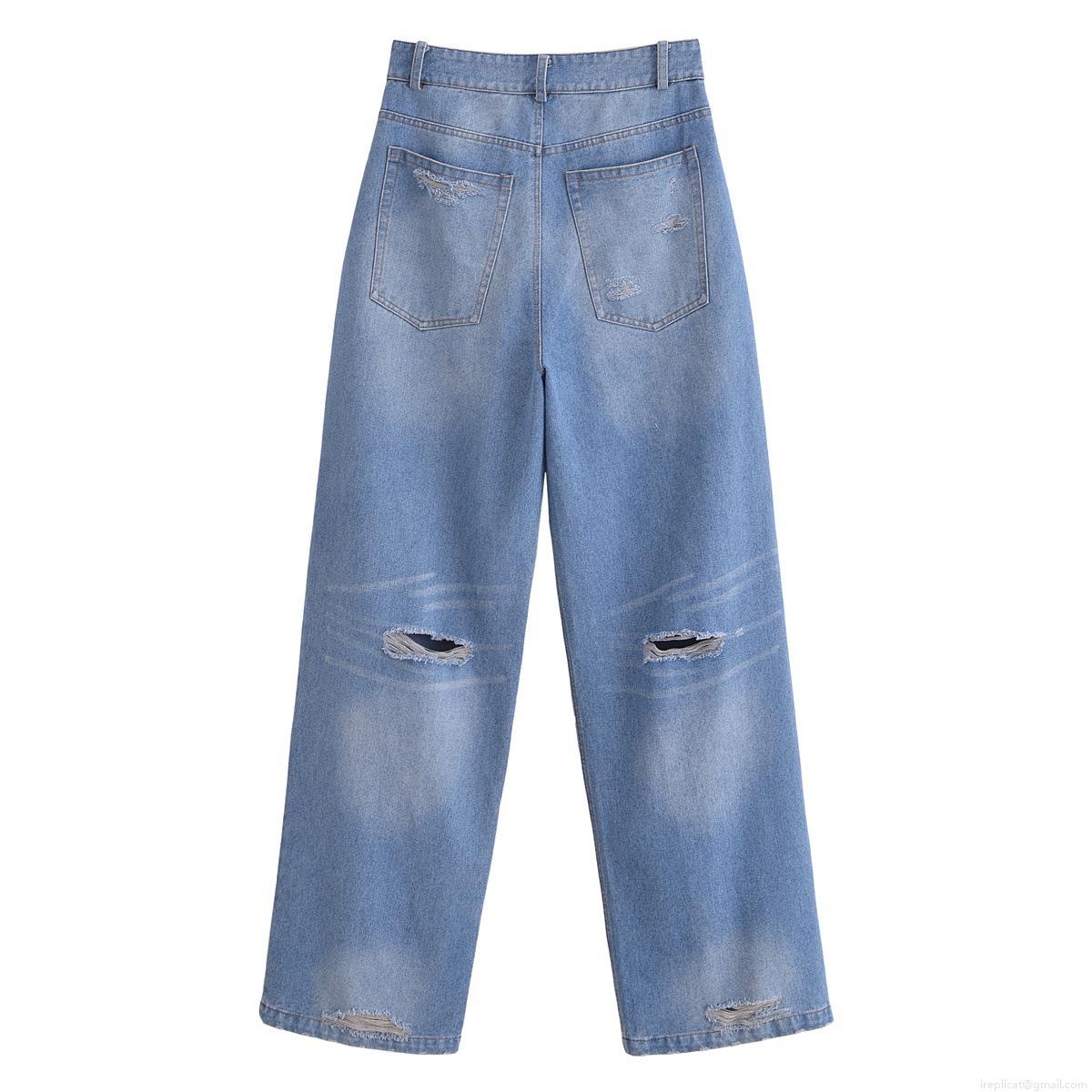 Women's High Waisted Wide Leg Jeans Distressed Ripped Denim Pants Light Blue Washed Streetwear Loose Fit Long Trousers Women Clothing