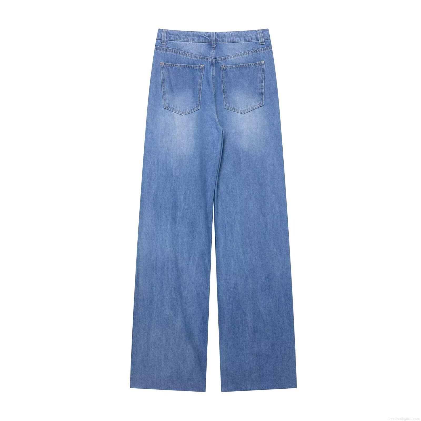 Solid Color, Water Wash, Hole, Zipper, Rough Edges, Wide-leg