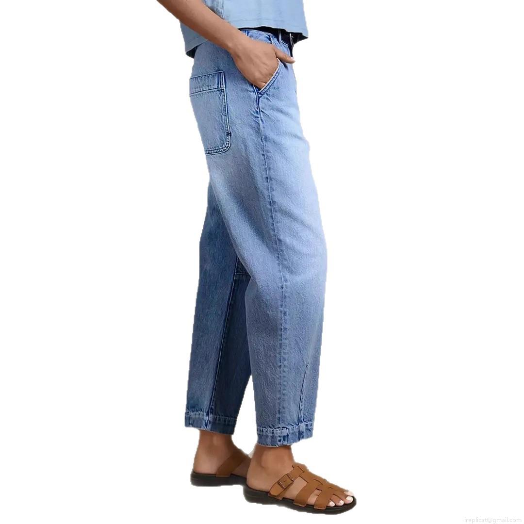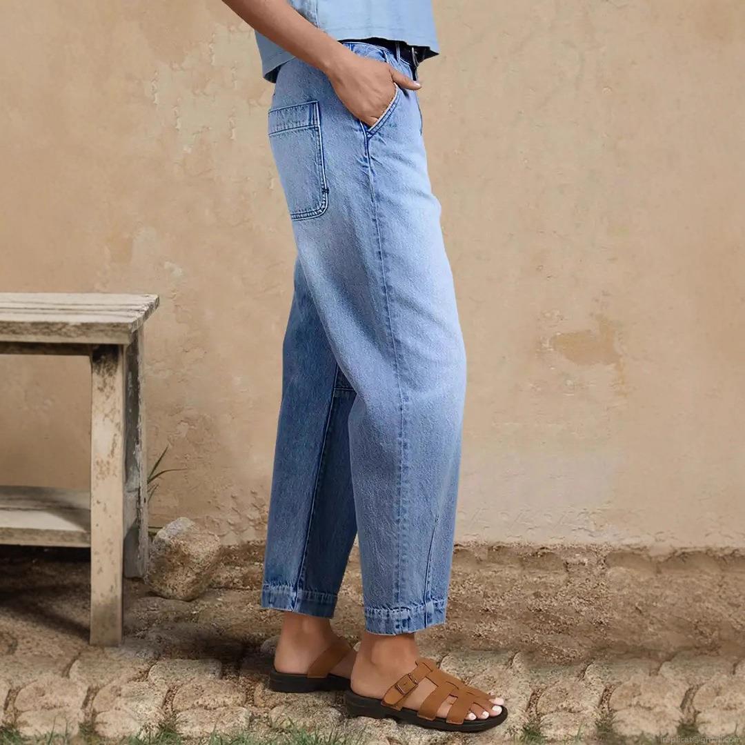• Women's High Waisted Wide Leg Jeans Washed Denim Cotton Blend Cropped Straight Leg Pants With Slit Hem Casual Streetwear For Ladies
