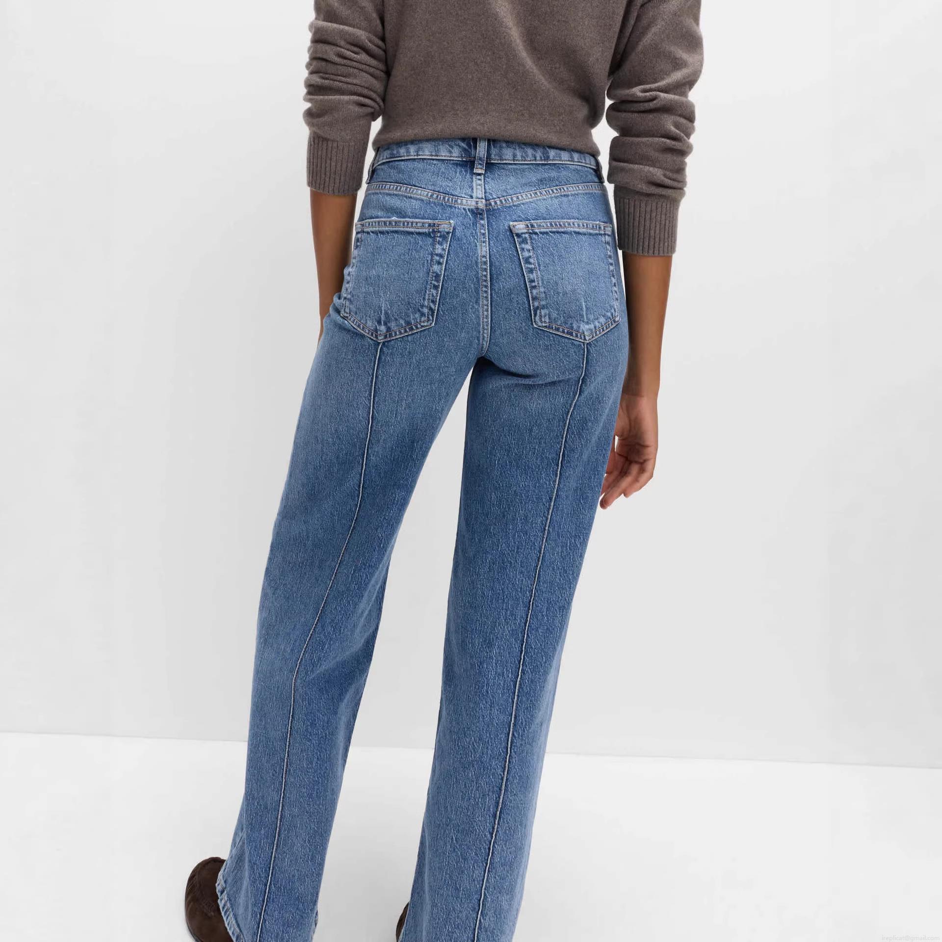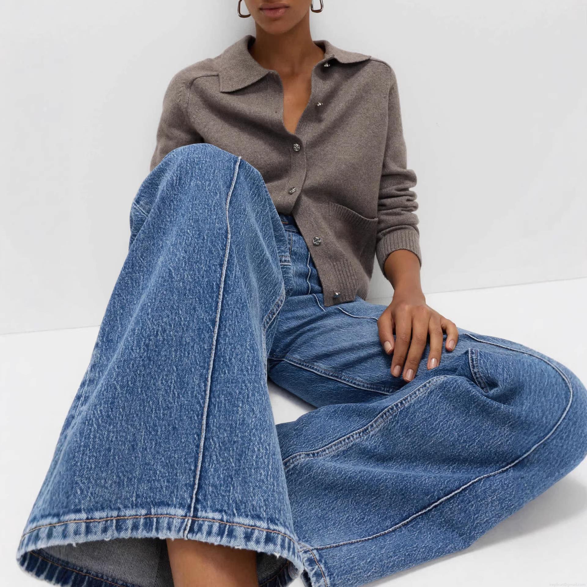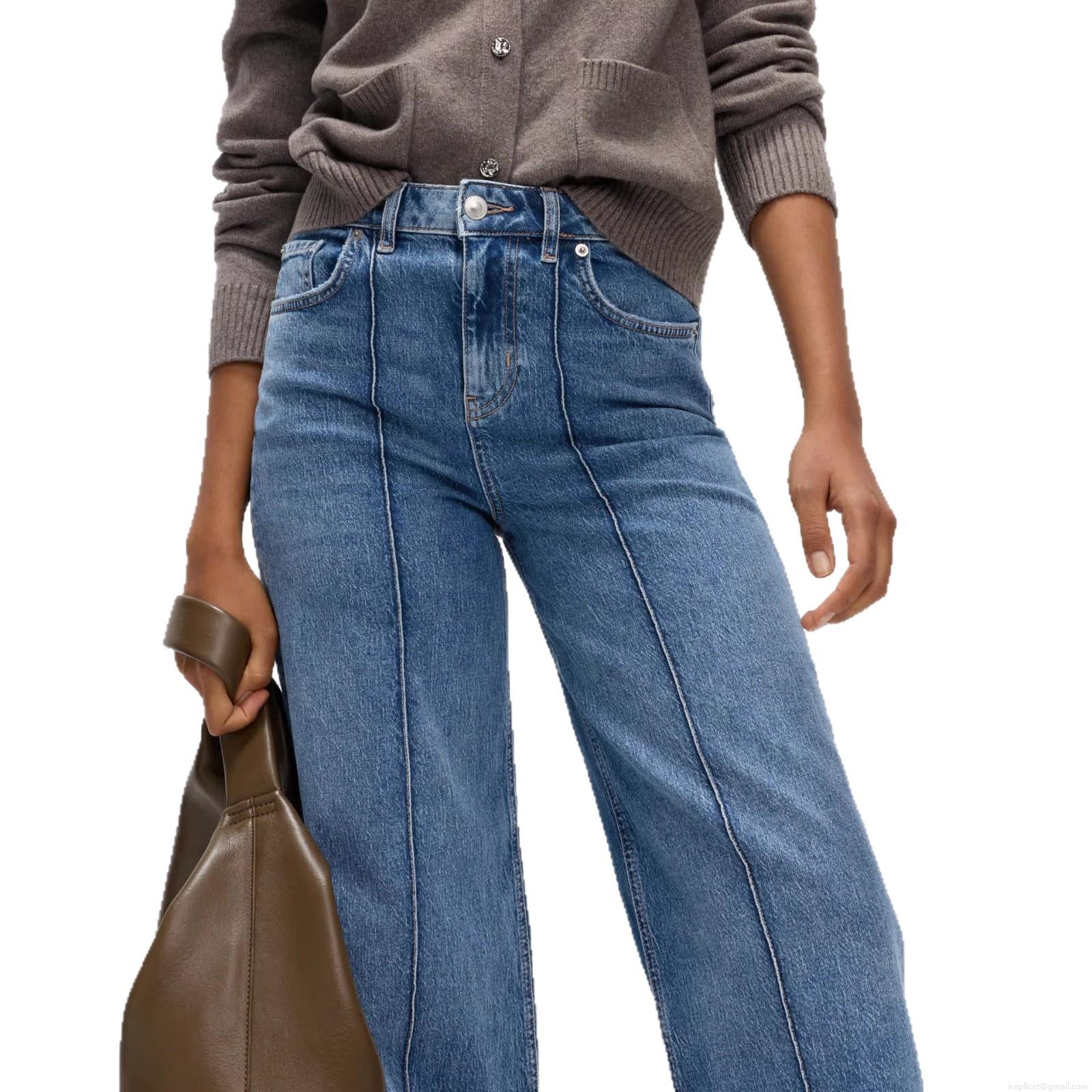 • Women's High Waisted Wide Leg Jeans Washed Denim Streetwear Trousers With Front Contrast Stitching Vintage Casual Cotton Blend Long Pants