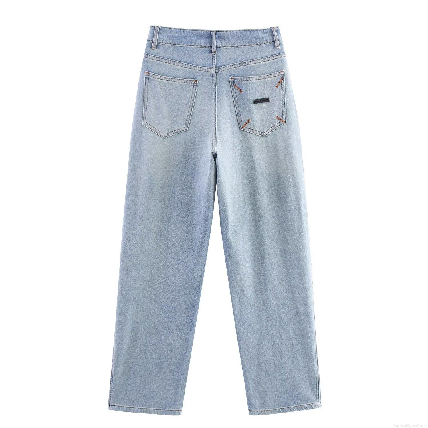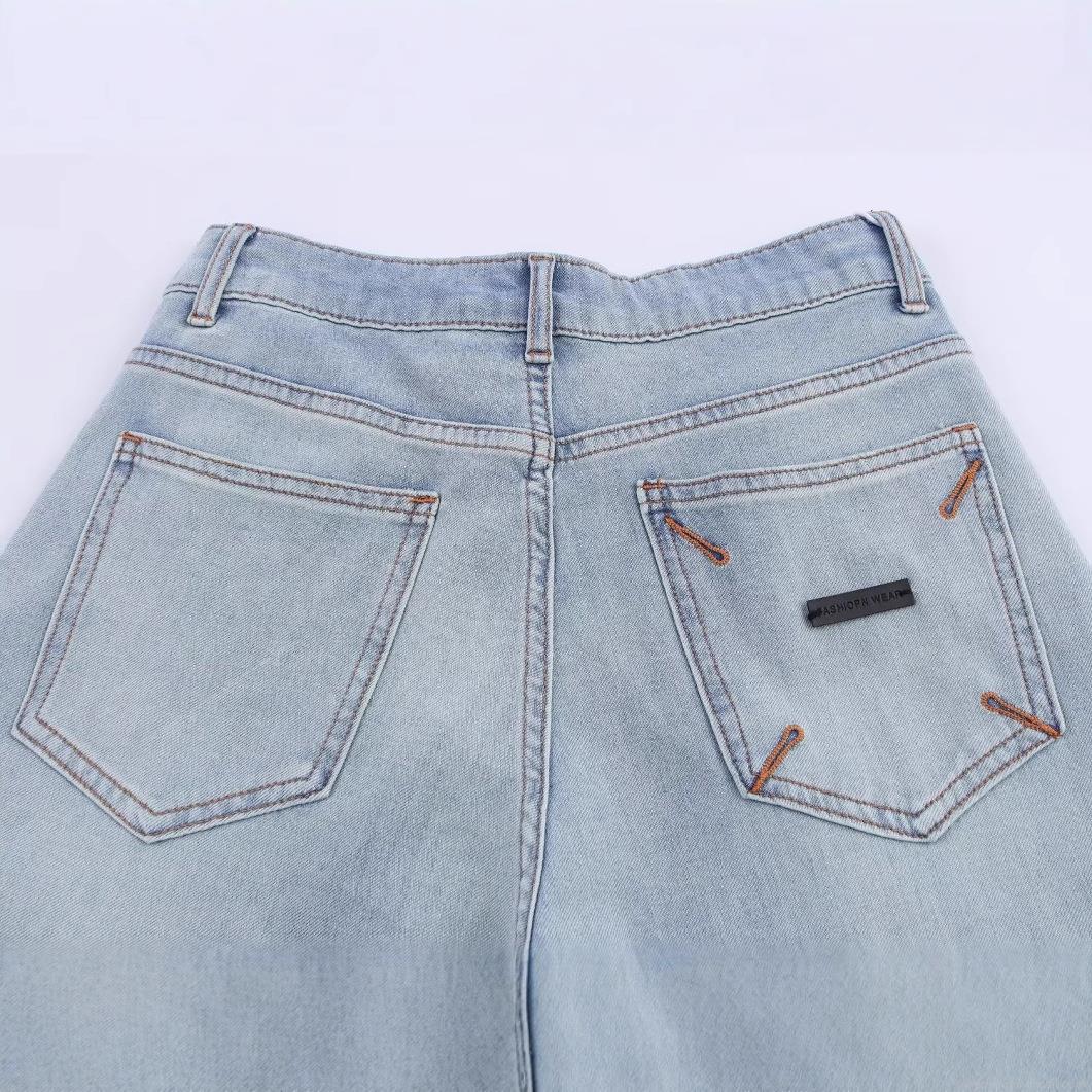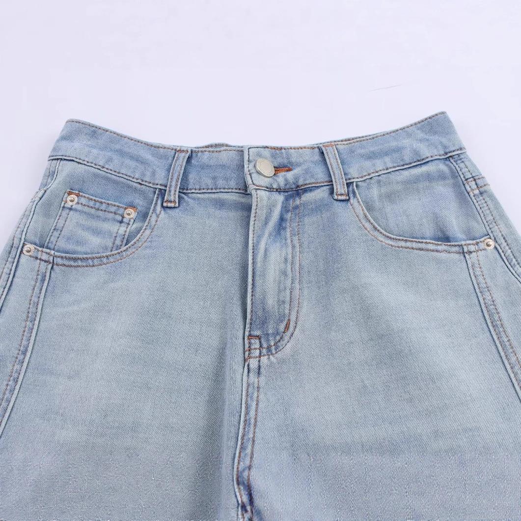 Women's Light Blue Wide Leg Jeans Loose Casual Polyester Denim Trousers With Pockets Contrast Stitching Western Streetwear Style Long Pants