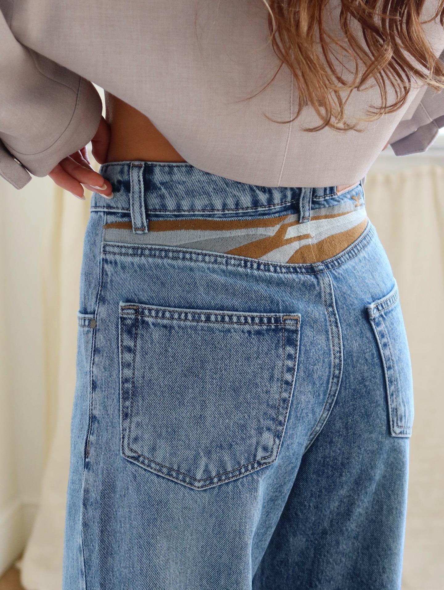 • Women's Retro High Waisted Flare Jeans 100% Cotton Denim Slim Fit Long Trousers With Patchwork Back Waist Color Block Detail Streetwear