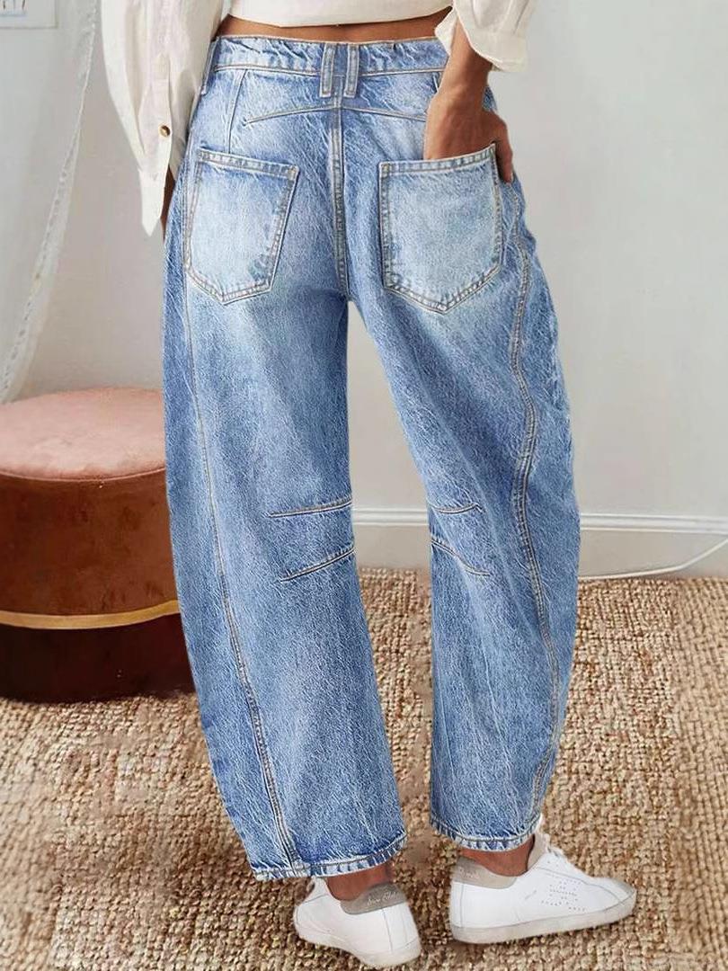 Women's Retro High Waisted Straight Leg Jeans Light Blue Washed Denim Wide Leg Trousers Loose Fit Cotton Blend Streetwear Casual Full Length Pants
