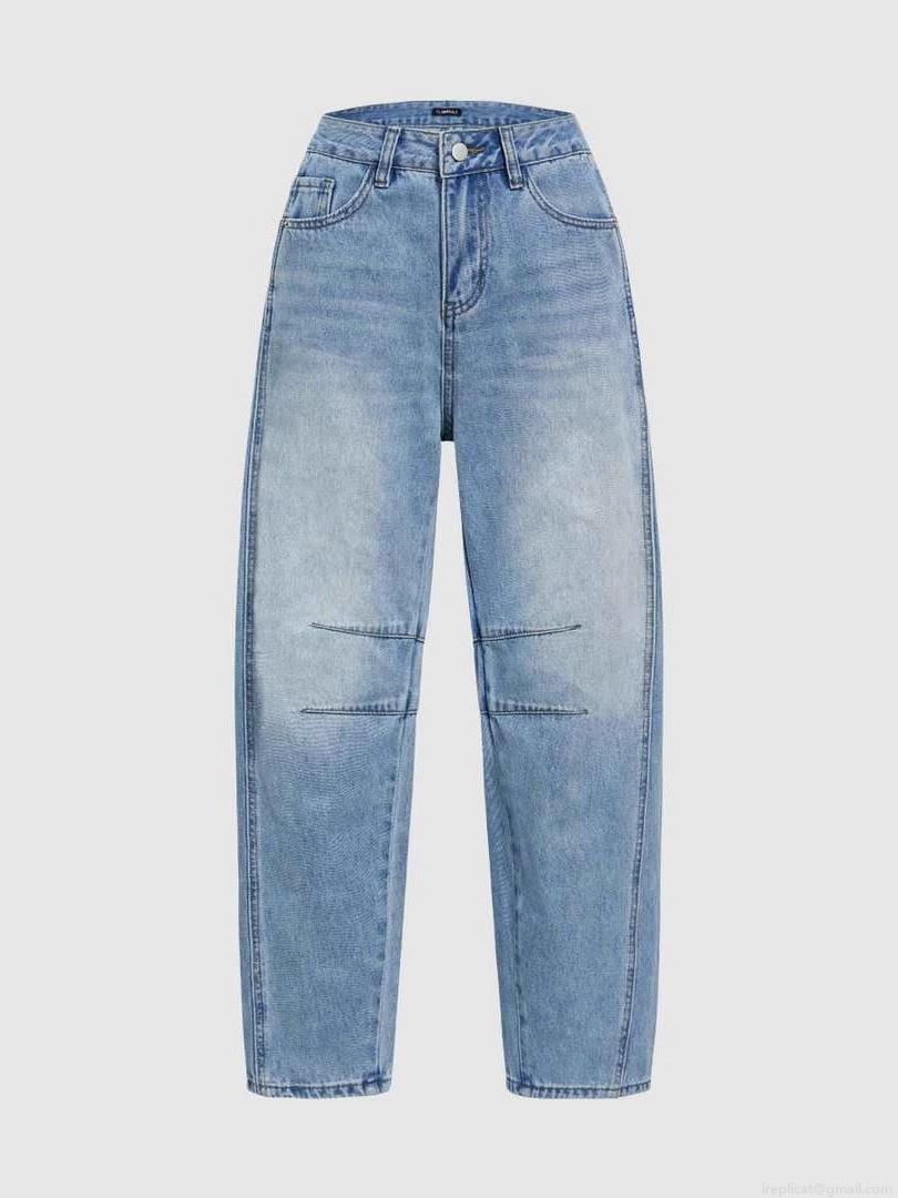 Solid Color, Water Wash, Exposed Wiring, Water Washing And Whitening, High-waisted Design